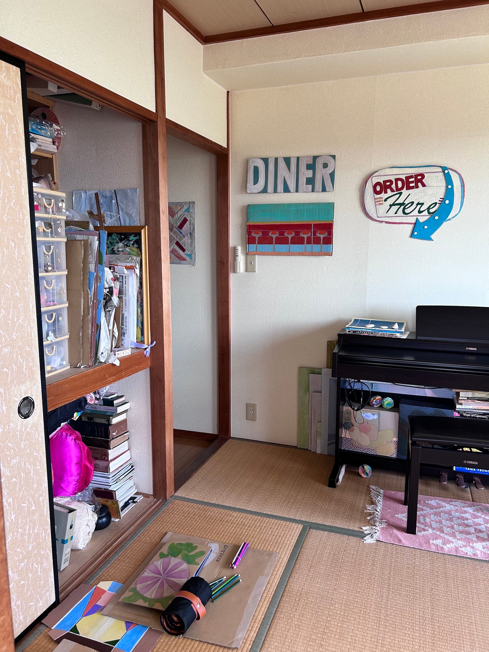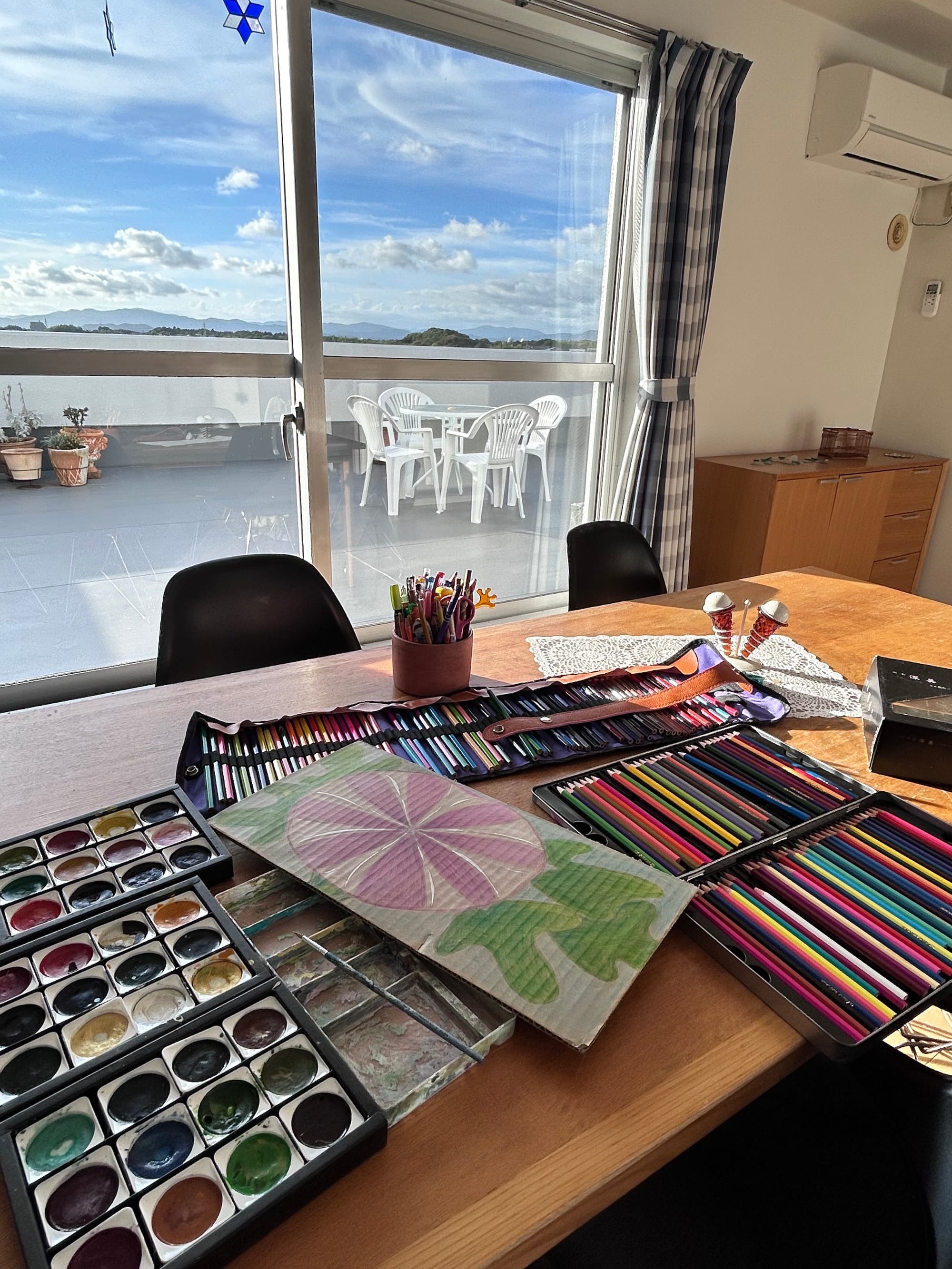 “My work table is my dining table, teaching table, and painting table.”