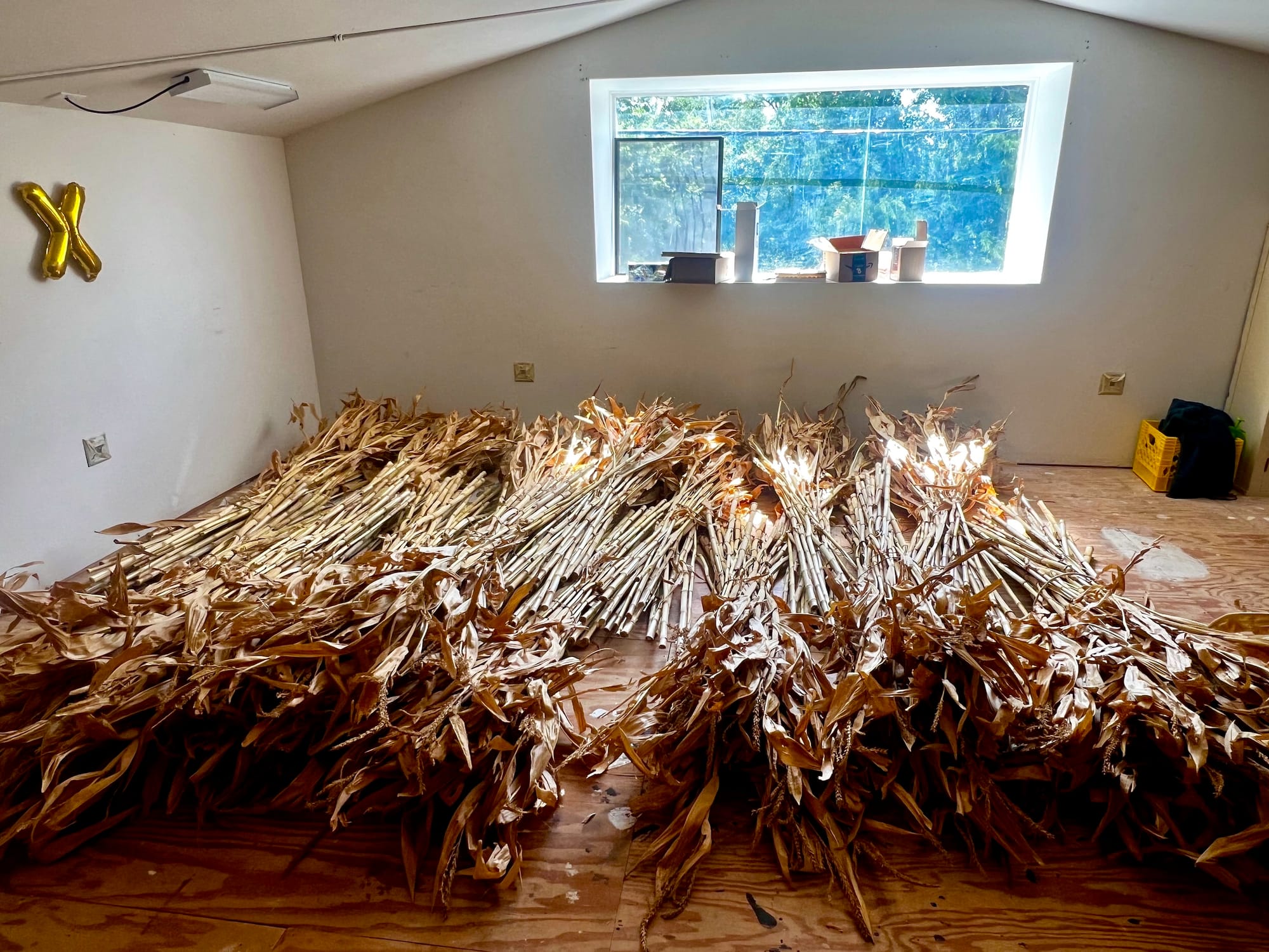 My process includes deep research, growing and caring for plants that have ancestral history, preparing food, reading/writing, taking snack and dance breaks to Bad Bunny/Combo Chimbita. Because I teach, my studio days are long when I get the time to fully dive in. My dog usually joins me in the studio, and I see my walks with him as part of my studio practice. My walks are meditative, observant, and they're also when I do a lot of my thinking and troubleshooting for my projects. Because my work is so deeply rooted in the geographies I’ve lived in and the relationships I’ve built there, studio work and everyday life often blur together, constantly feeding each other.