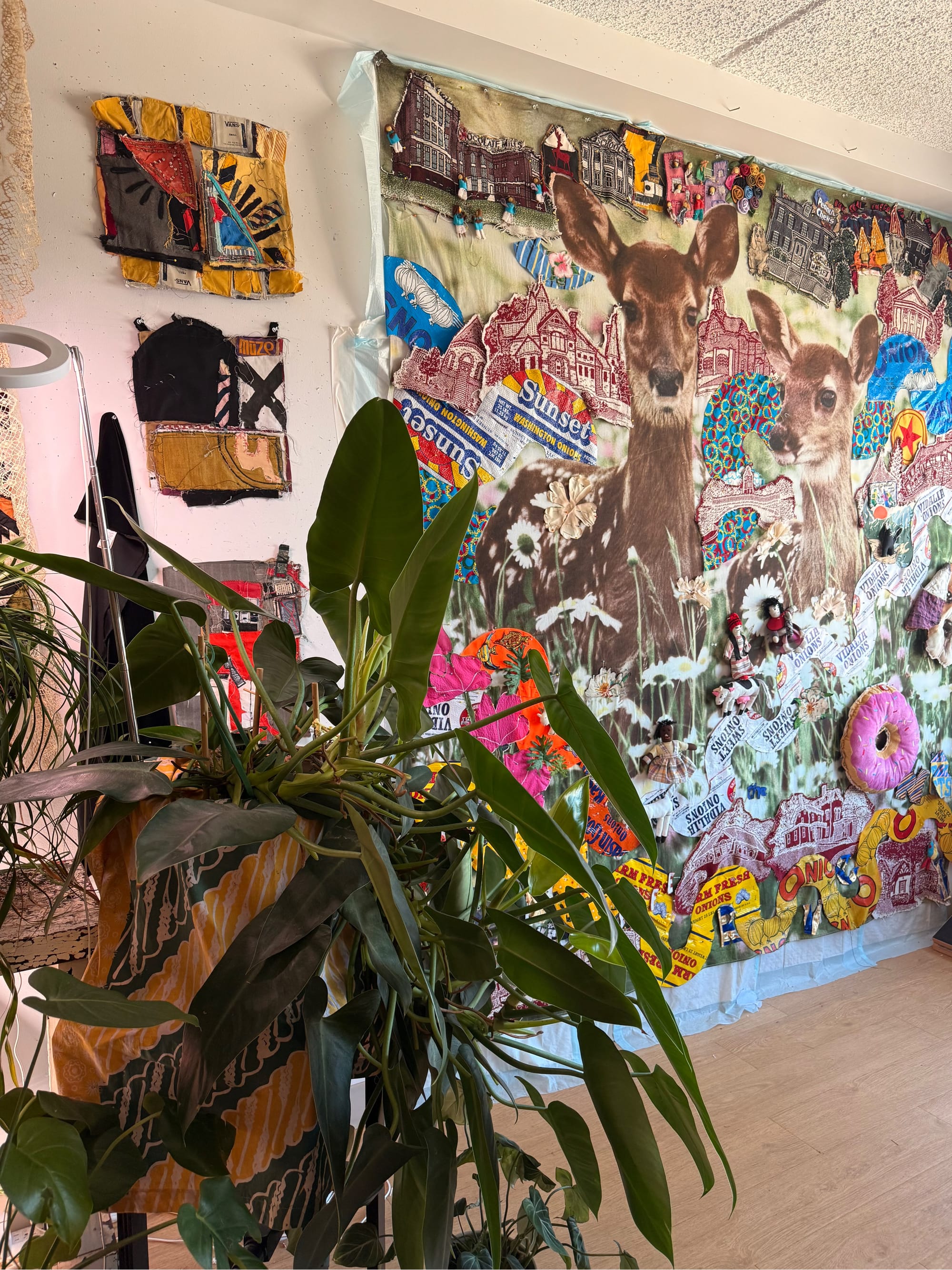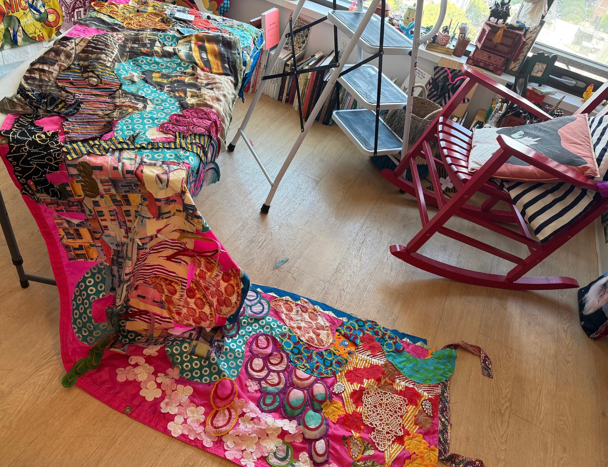Seven hundred and sixty-four square feet doesn’t suggest large-scale work, but easel-sized pieces are too tepid for me, so I take over walls and floor space usually used for furnishings. Right now, I’m working on a 12-foot scroll and an eight-by-eight-inch hanging. The broad view and quietude remind me I’m playing a long game, so I wait for my work to tell me it's finished and not dictate its evolution.
