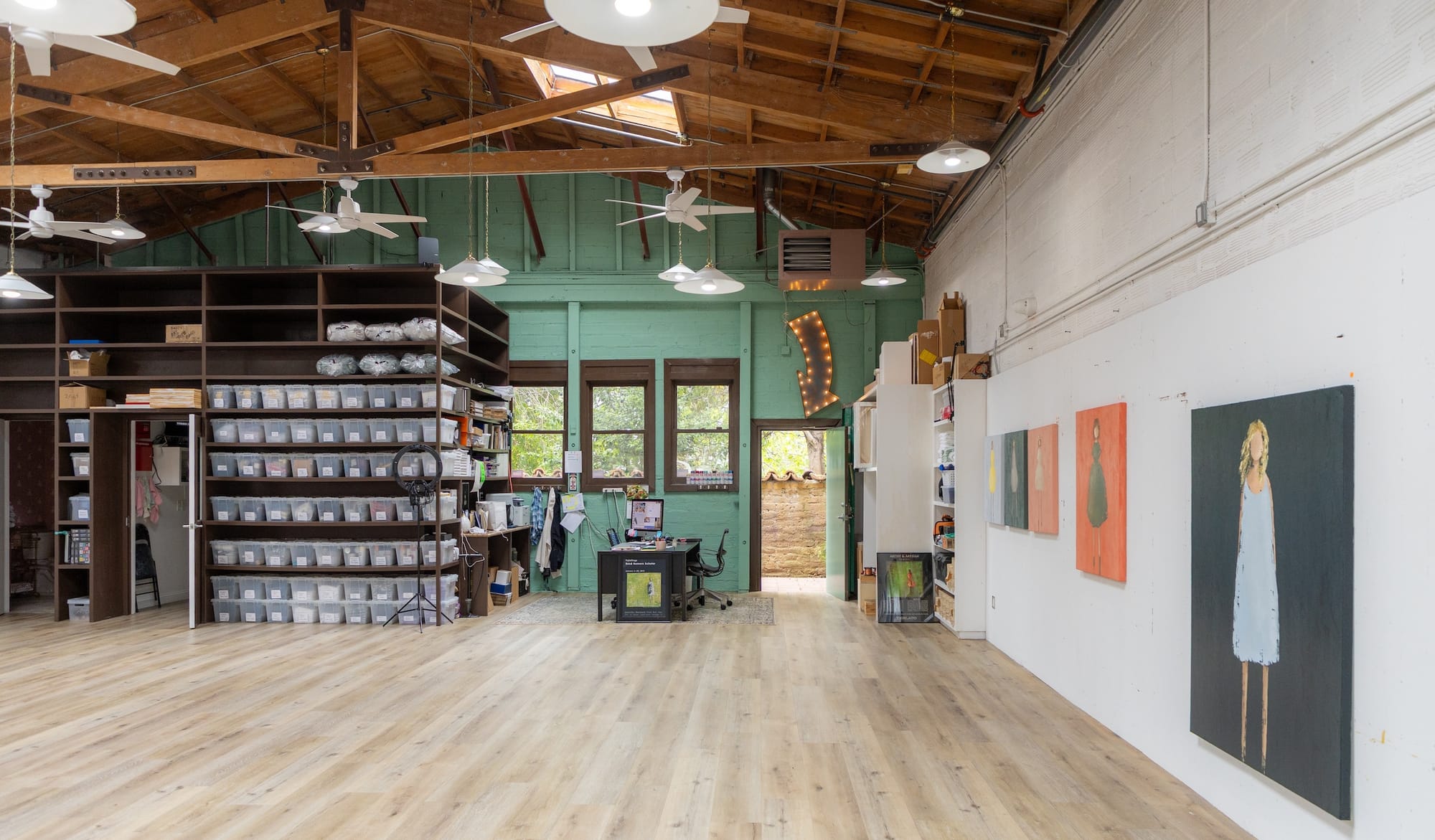 Having a dedicated space to create allows me the freedom to work without concern for getting paint on things around me. The room is spacious enough that I can step really far back from work, the wide-open, airy, well-ventilated space allowing me to breathe, and the abundance of natural light allowing for a trueness in my palette.