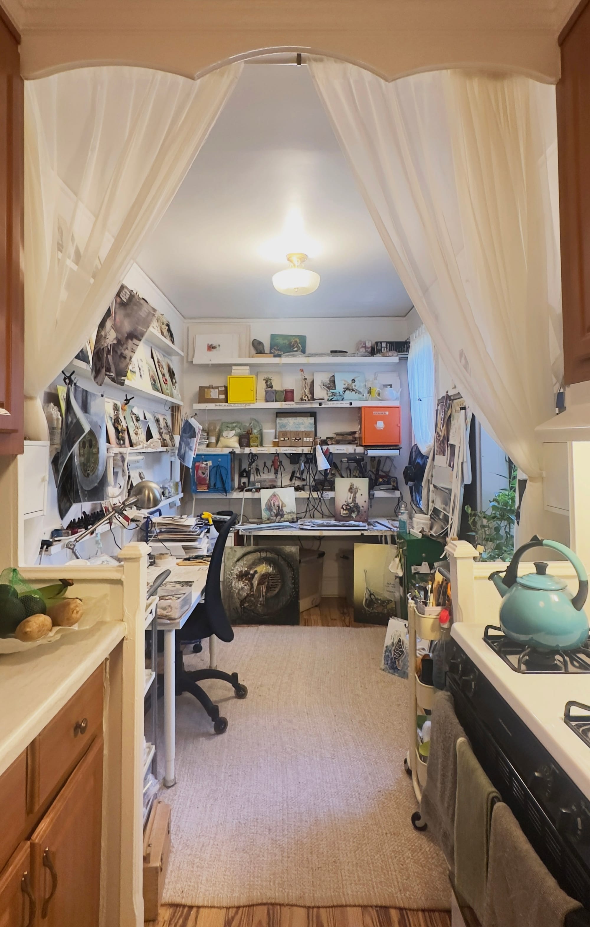 At the moment, the intimate nature of my space connected to my kitchen leads to small, intimate pieces. The whole area provides both food for the soul and mind.