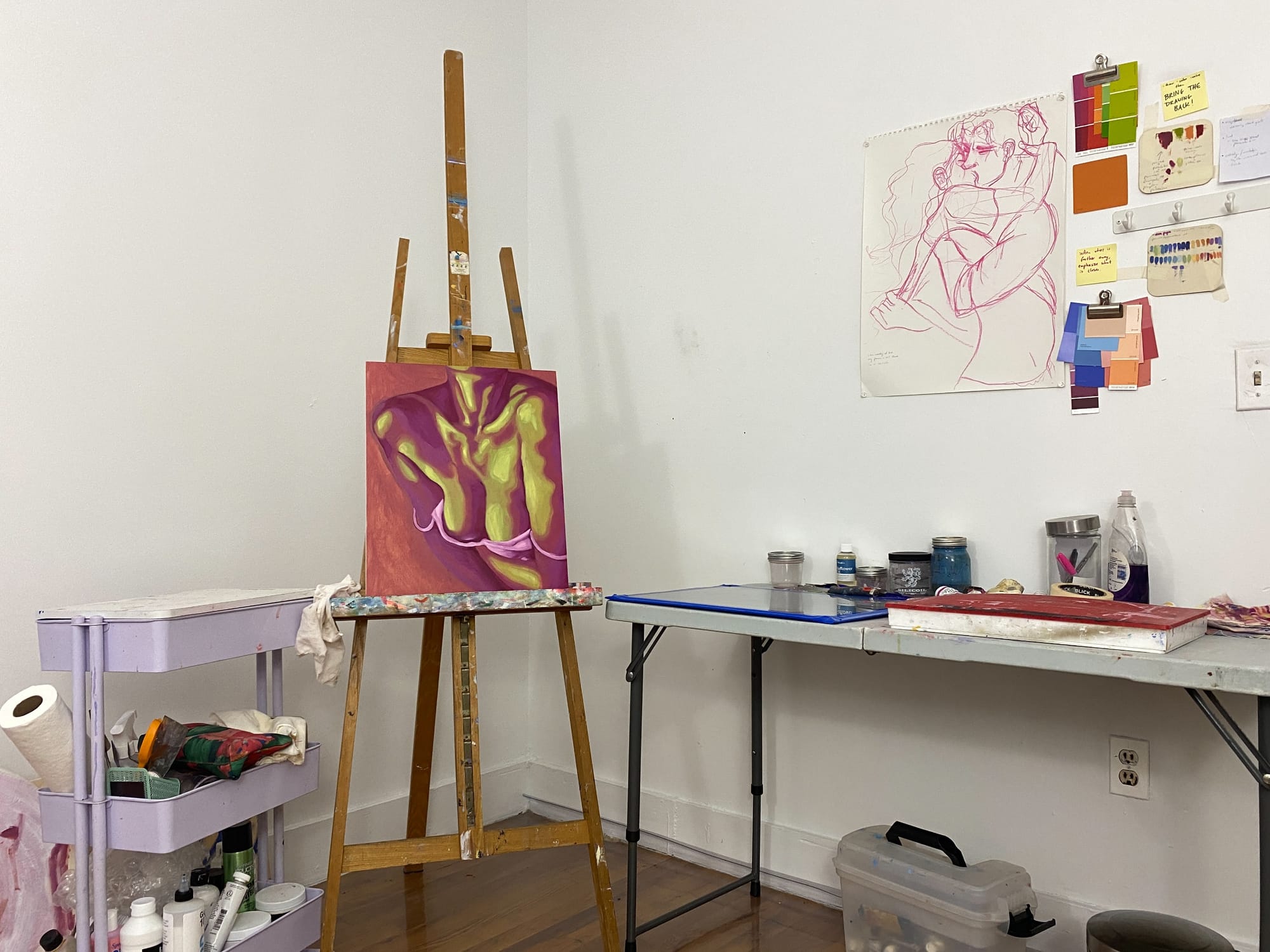 My studio and home are set in a very lively and artistically driven community in Brooklyn, where there are many murals, gallery spaces, working studios, and artists around me. I feel a bit disconnected because I have yet to make connections with the people within my community but I often stop by the spaces to keep myself up to date on the contemporary work.