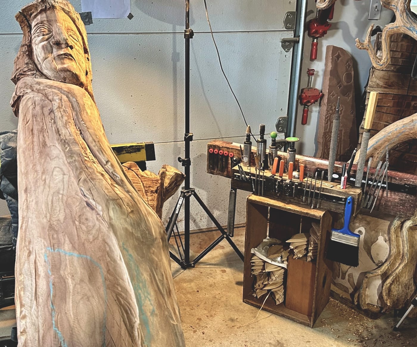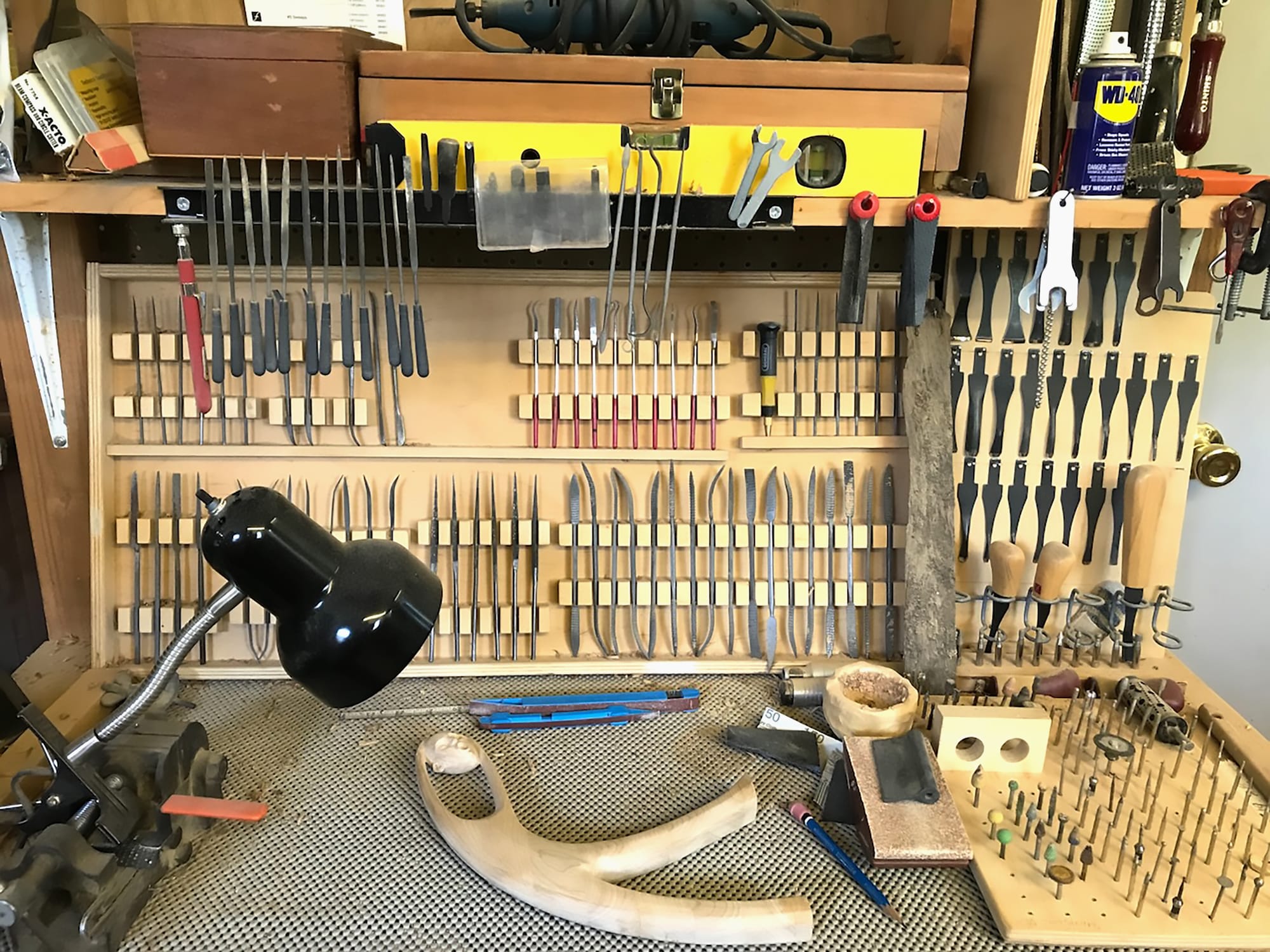 I have an abundance of tools for every situation and size for carving, and they are aesthetically organized for pleasure and efficiency.