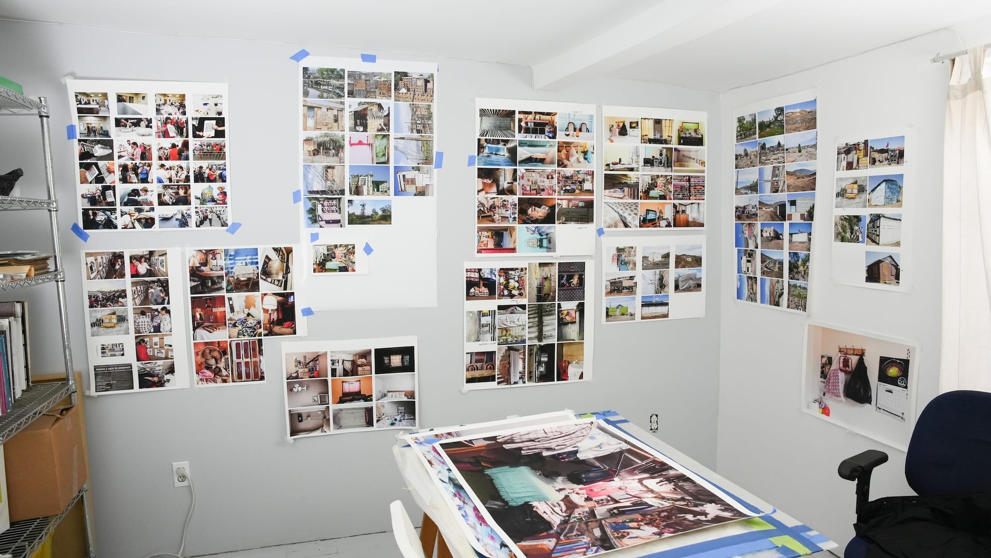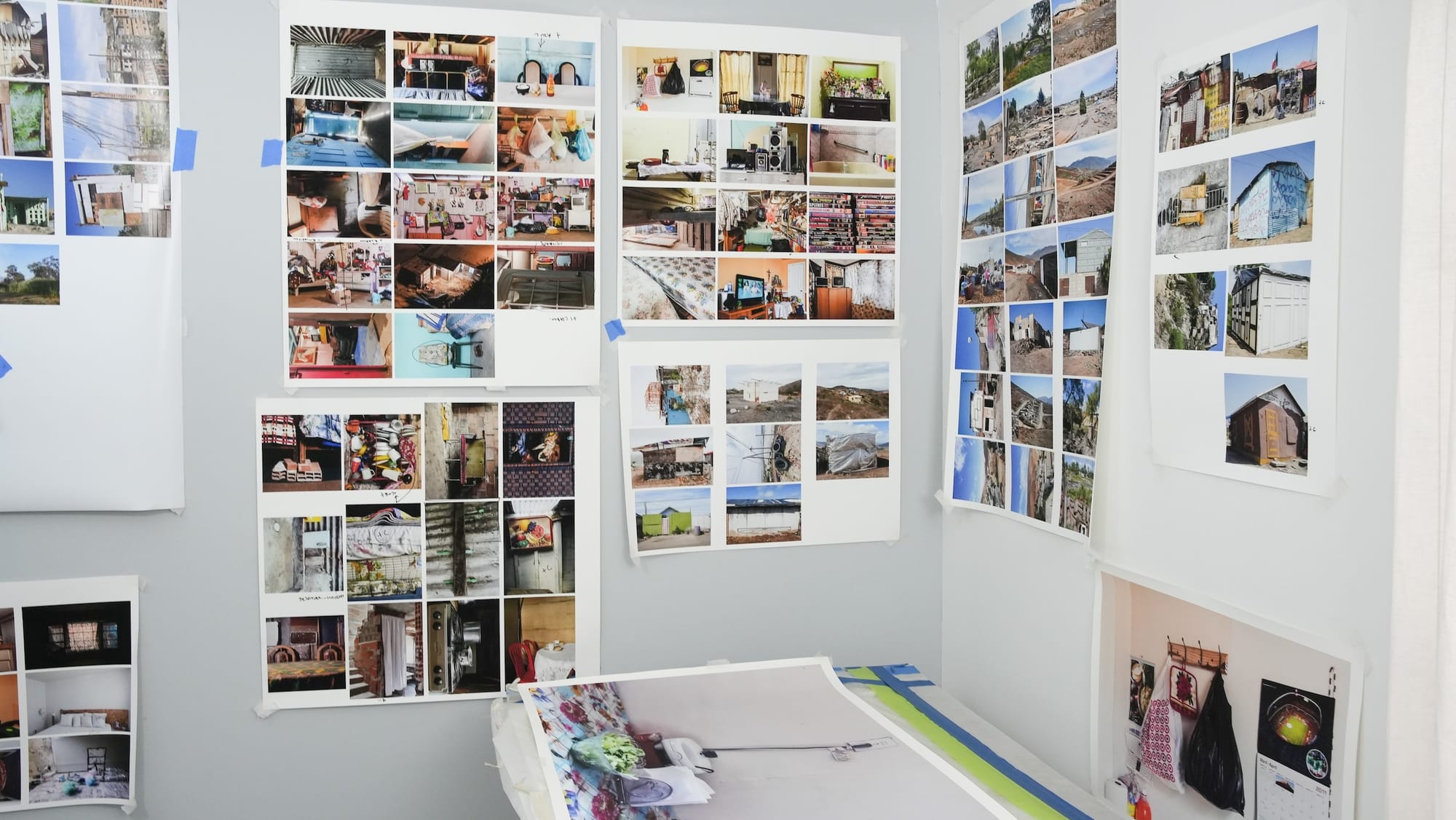 I work in two very different spaces. In one of them, I use the studio walls to place my images in various formats, where I plan the order, scale, and series of each project. I think of this space almost as a rehearsal for a museum or gallery, a place where I can experiment with different wall installations. The other space is dedicated to writing: I work in front of a large window overlooking the city. This environment allows for concentration, contemplation, and a sense of freedom in my thinking.