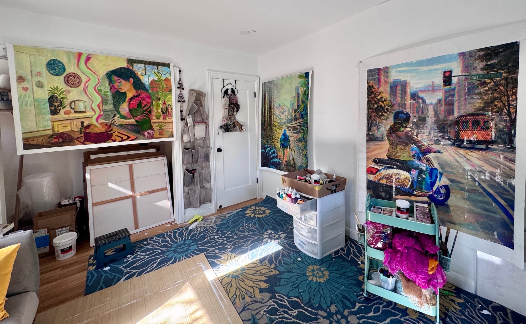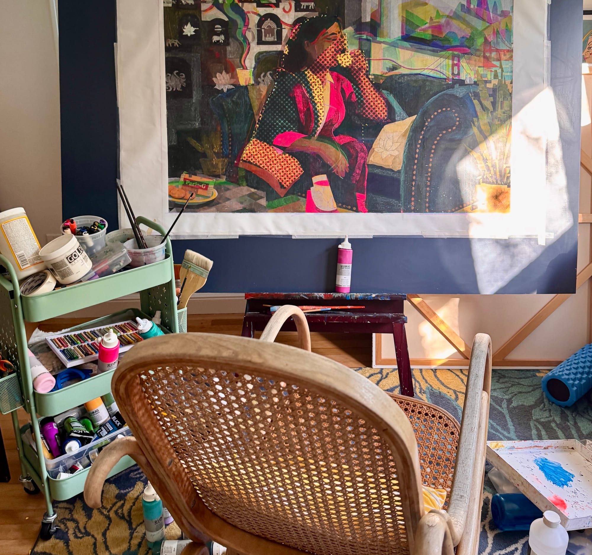 I’m actively connected to the local art community through groups like Northern California Women’s Caucus for Art and ArtTogether. Being part of these spaces and attending exhibitions, open studios, and events keeps me in conversation with other artists and grounded in what’s happening now. Much of my work centers on stories of underrepresented and immigrant communities, and staying engaged beyond the studio helps those stories remain lived, responsive, and real.