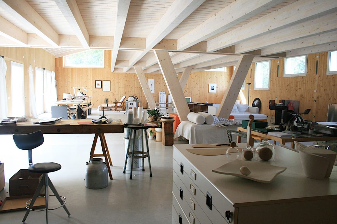 My studio is very quiet. I love the silence of the countryside, which produces a sort of expectation in me. I look at the things that are scattered around and I always find a good reason to start or complete a work. The essential element is the surprise of what happens. I don't foresee certain results, but I welcome the provocation of the material and the form.