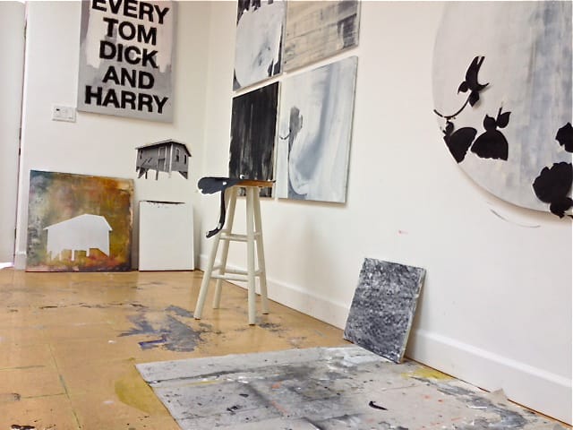I often work on larger format paintings, as I enjoy the physical labour involved in the making of the larger works. I also develop many pieces simultaneously as I like to keep a rhythm while I work. If I ever feel stuck on one piece, then I move to another that feels right. Moving between pieces enables my ideas to be fabricated before they are lost. My current paintings are mostly abstractions with some more tangible imagery here and there. This studio is my sacred space.