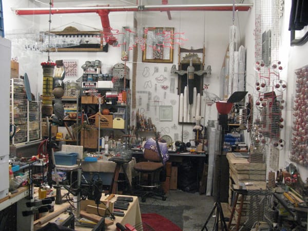 My workspace is my world. I try and work there everyday to keep my focus and energy flowing in a straight line. Filled with my objects for constructions, surrounded by my past work and work in progress, I am continually writing my story. My work has changed since I moved my studio to Brooklyn and will continue to do so in the future, with an open mind and renewed energy.