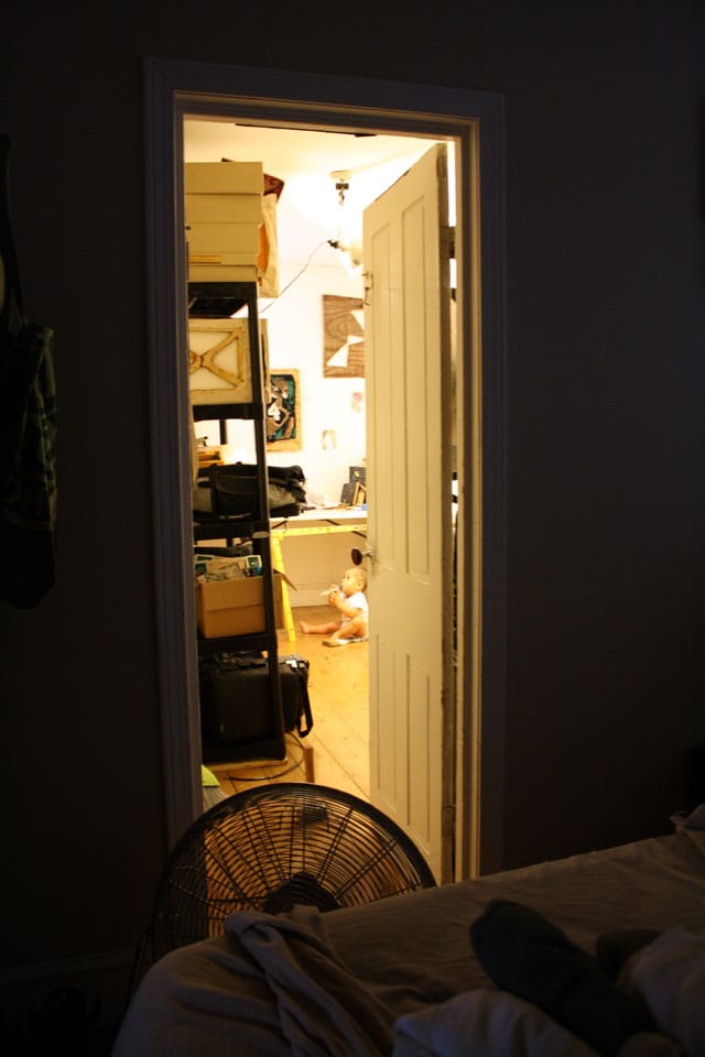 A hole in the wall is not a far exaggeration to describe my studio space. I have seen walk-in closets larger than my work area; however, it is financially practical and convenient to have a live-in work space right now, especially when juggling an art practice and a young family.