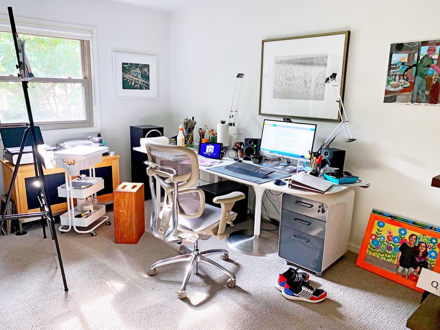 This is the 176th installment of a series in which artists send in a photo and a description of their workspace. In light of COVID-19, we’ve asked participants to reflect on how the pandemic has changed their studio space and/or if they are focusing on particular projects while quarantining. Want to take part? Submit your studio — just check out the submission guidelines.