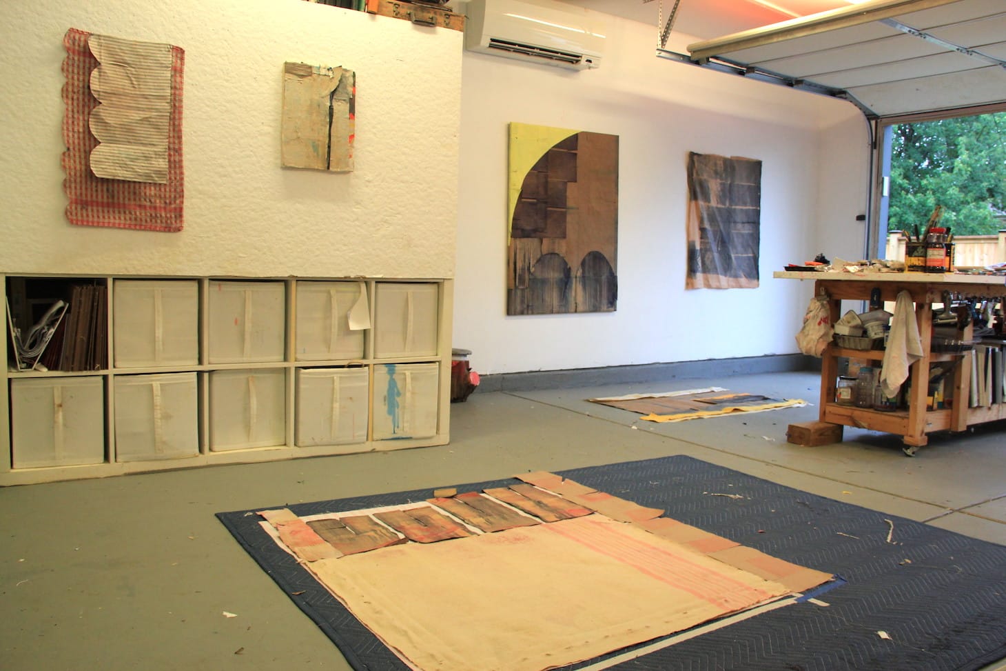 I have been quarantining with my family in East Nashville. I have exchanged the care for my MFA students for caring for and helping to teach my own three kids in virtual school. I spent most of fall 2019 researching and writing. That deep work set me up for a productive and gratifying studio practice in spring 2020, creating a strange and vivid contrast between what was happening in the work and outside in the world. The feeling of immense gratitude for this space stands in direct contrast and in equal measure to the darkness around us. My work has a deepened connection to materiality and home/land through the use of cardboard, paper, and textiles, calling attention to a “southern” povera and rural vernacular.