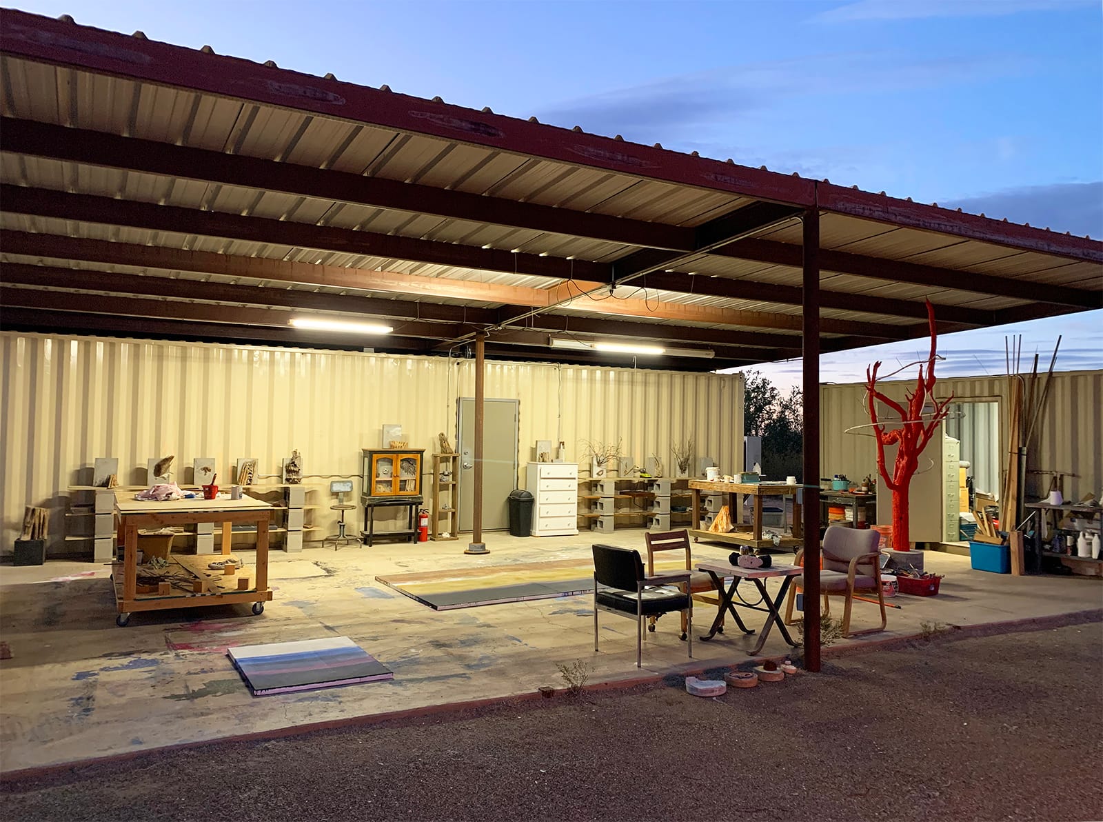 When I bought a lot of land in the Sonoran Desert, on the edge of the Saguaro National Park, I knew that the already built structure with a steel roof over a 40-foot shipping container and over a concrete slab would be a perfect studio. Since then, I've built my home next to it, and eventually I'll live there for the rest of my life.