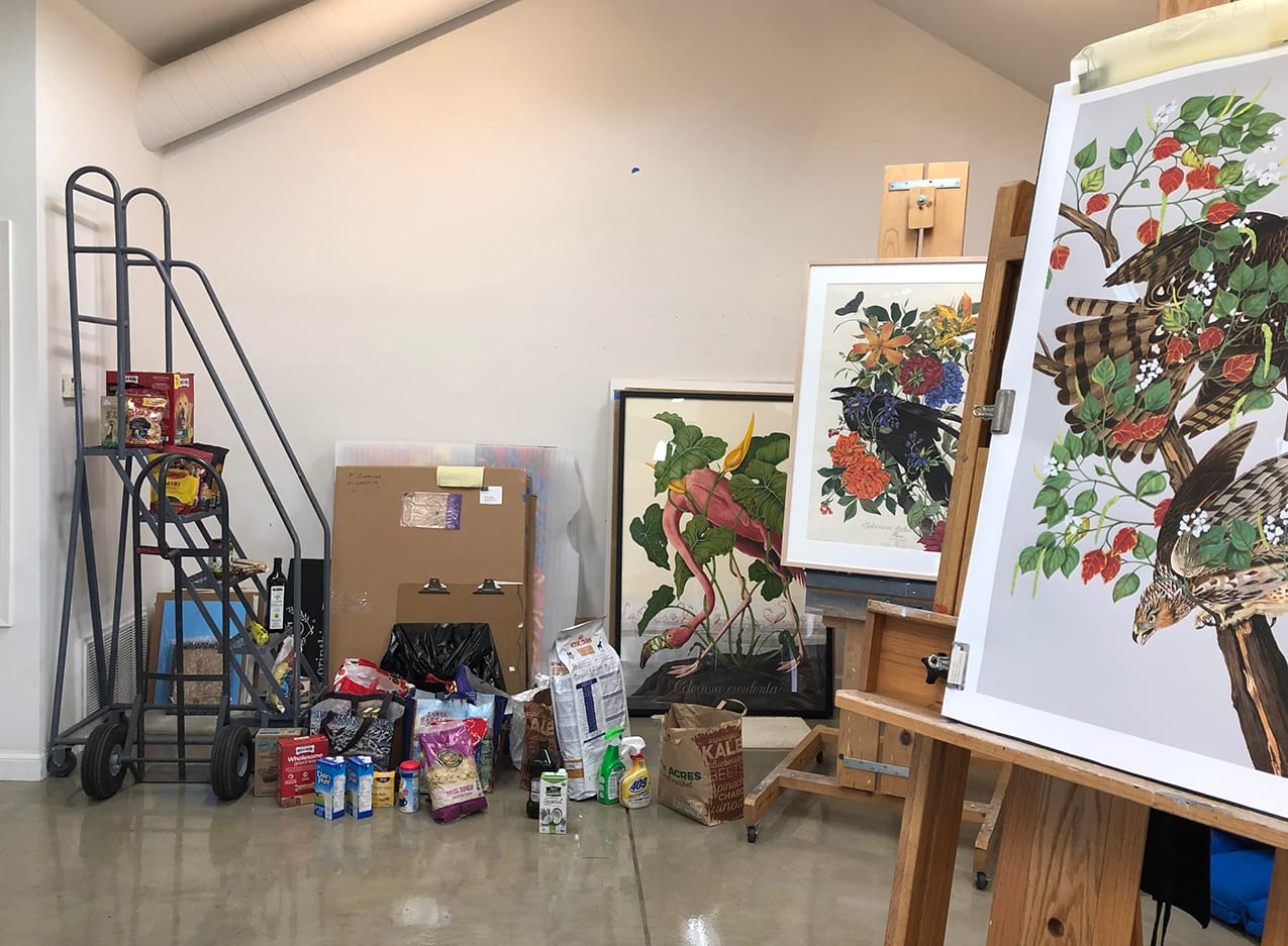 My studio has become the overflow for our emergency two weeks of essentials. Rather than being upsetting, I find the bags to be comforting. They sit and wait for us, promising we will be OK, at least for a while. All my upcoming exhibitions are on hold, the galleries are closed. My work considers endangered species and more and more I am reminded of my own vulnerability.