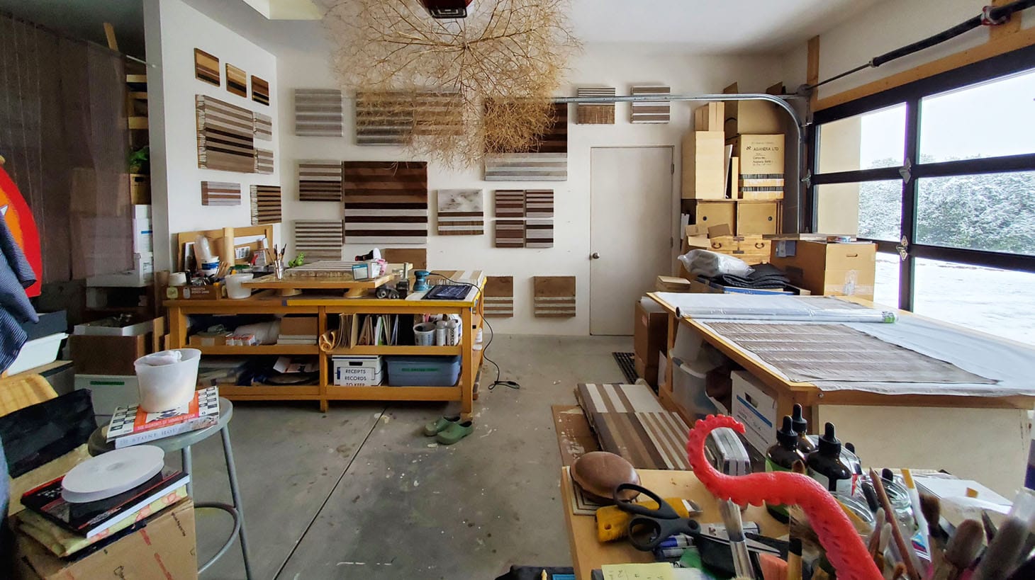 My studio is in my garage. During this pandemic, with my children at home and my husband still working out in the world, my time and concentration are splintered, my anxiety is accelerated and my studio itself is a shitshow. My studio has become a dumping ground for my unease and my family’s clutter. As a self-employed artist/designer, economic uncertainty existed before COVID-19 but now it feels galactic in scale. Strangely, I feel a comforting sense of community and connection because this crisis is global, and no one is unaffected. But like most catastrophes, there is a distillation of priorities: safety and health supersede economics. The clutter is insignificant. I am fortunate to not be restricted by current, limited access to materials because my art process involves using soil from around where I am working. After this crisis subsides, my focus on the fragility and perseverance of the natural world and the tension between the environment and humanity will be more resonant.