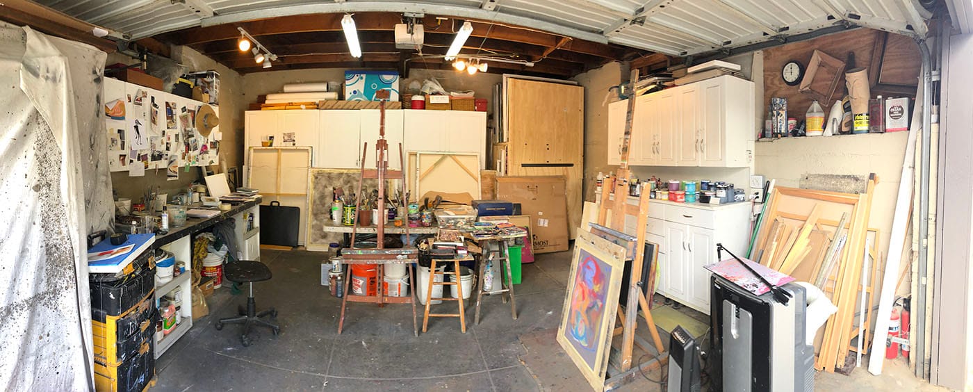 Since the recommendation in Los Angeles to “shelter in place,” I have been working from my garage. It’s a hillside home, to get to the garage is a walk of 37 steps to street level. I keep the roll-up door open to let in the natural light.