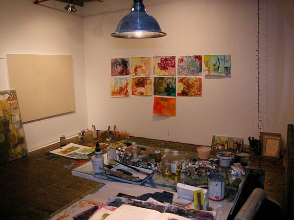The carpet on the floor is covered with six years’ worth of leftovers. It’s very heavy. The chair on the left is also covered with six years’ of drippings. I really like that chair. The space fills with northern light, perfect for photographing work or the occasional times I paint during the day. I won’t be leaving anytime soon.