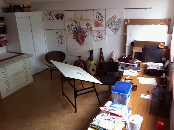 To my left are my old sketchbooks, reaching back into my undergraduate studies. I flip through them occasionally to see connections between my older thoughts and new projects. I like having my history close by.