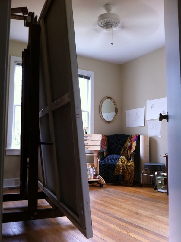 This studio is my childhood bedroom. I bought my childhood home where I grew up in Columbus a few years ago. It is not as regressive as it may seem. This is the house in which most of my dreams occur.