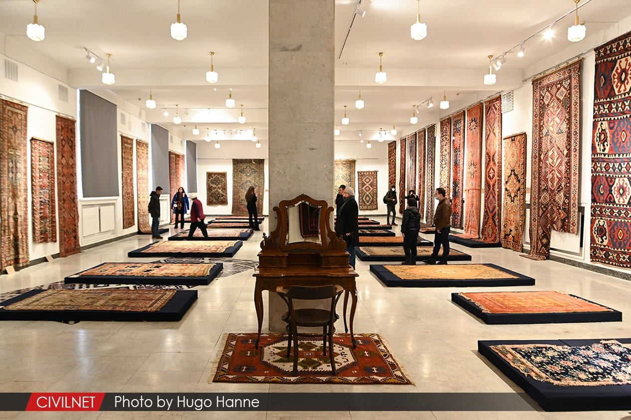 Exhibition of the rescued carpets of Shushi in an exhibition currently on display in Yerevan, Armenia. (photo by Hugo Hanne for CIVILNET and used with permission)