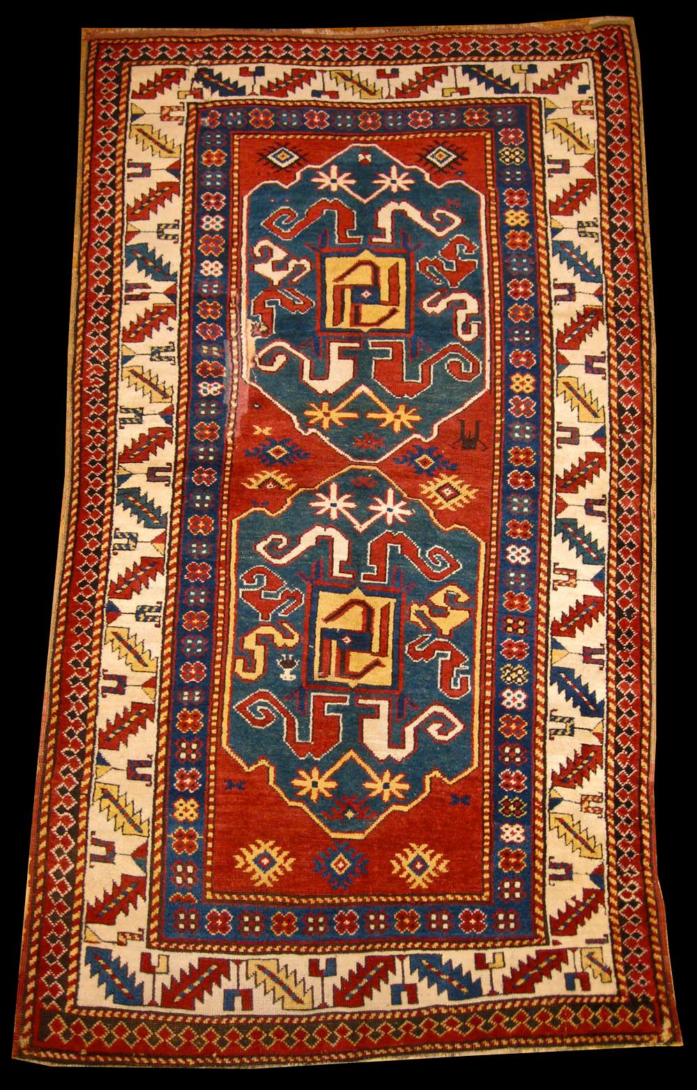Khndzoresk rug with a swastika at the center of the medallion (image courtesy Hratch Kozibeyokian)