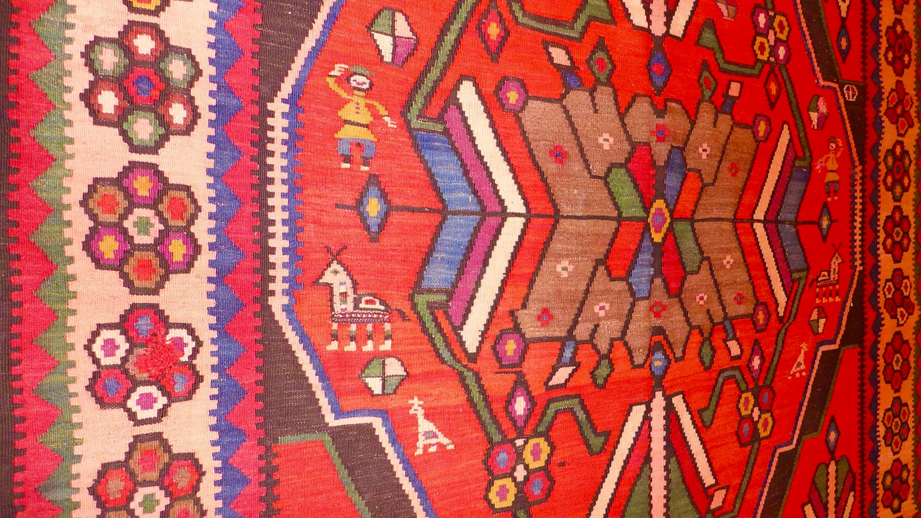 "Meghou" (bee) flatweave (garbed), inscribed and dated in Armenian, 1915, Shushi, Karabakh. Decorated by pictograms of humans and animals. (Private collection of Hratch Kozibeyokian and photo courtesy Kozibeyokian)