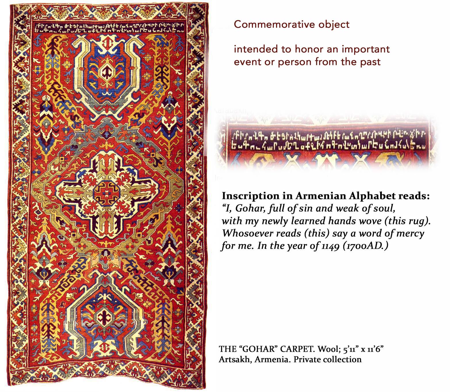 The Gohar or Guhar rug, dated and inscribed in Armenian (image courtesy the Armenian Rug Society)