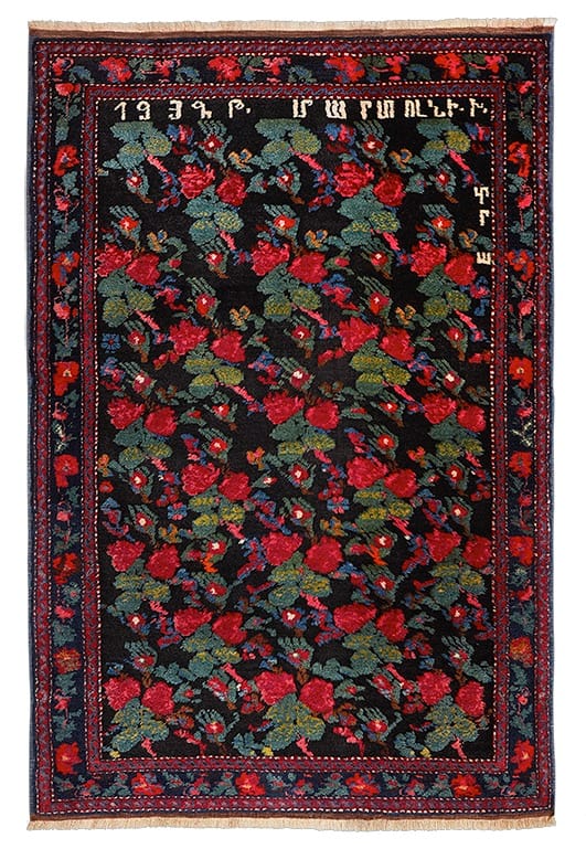 Typical Karabakh rose rug with Armenian inscription that reads "1939, Mardouni." (Private collection of Hadi Maktabi, and images courtesy Maktabi)