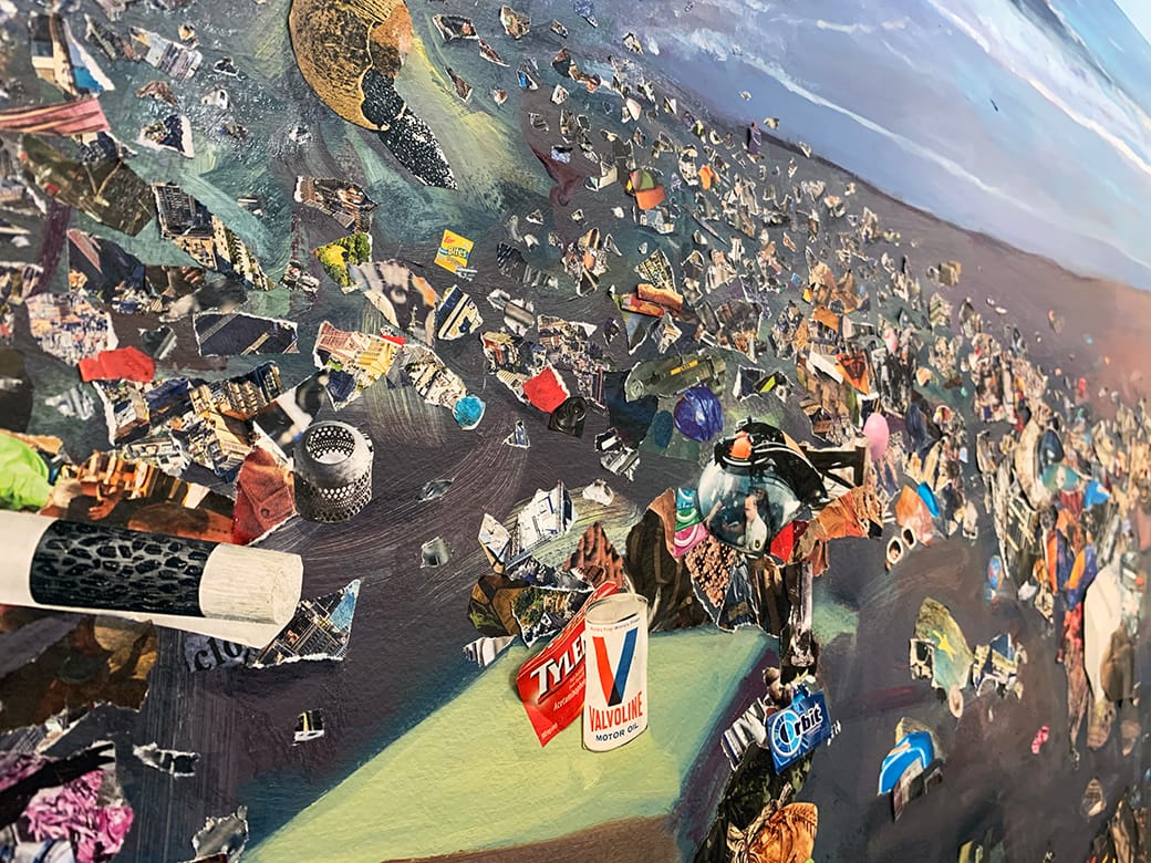 A different take on consumption and disposability was on view in the studio of Elena Soterakis at the NARS Foundation, where meticulously collaged seascapes highlighted shorelines full of cheerful waste. Combining watercolor, magazine ads, and actual trash, the result appeared beautiful rather than heavy-handed. Critiquing the wastefulness of U.S. society in works aptly titled “Ecocide,” Soterakis’ work draws easy parallels to the “eco-portraits” released this month by dictators Vladimir Putin and Kim Jong Un, foreshadowing the ecological resource wars to come.