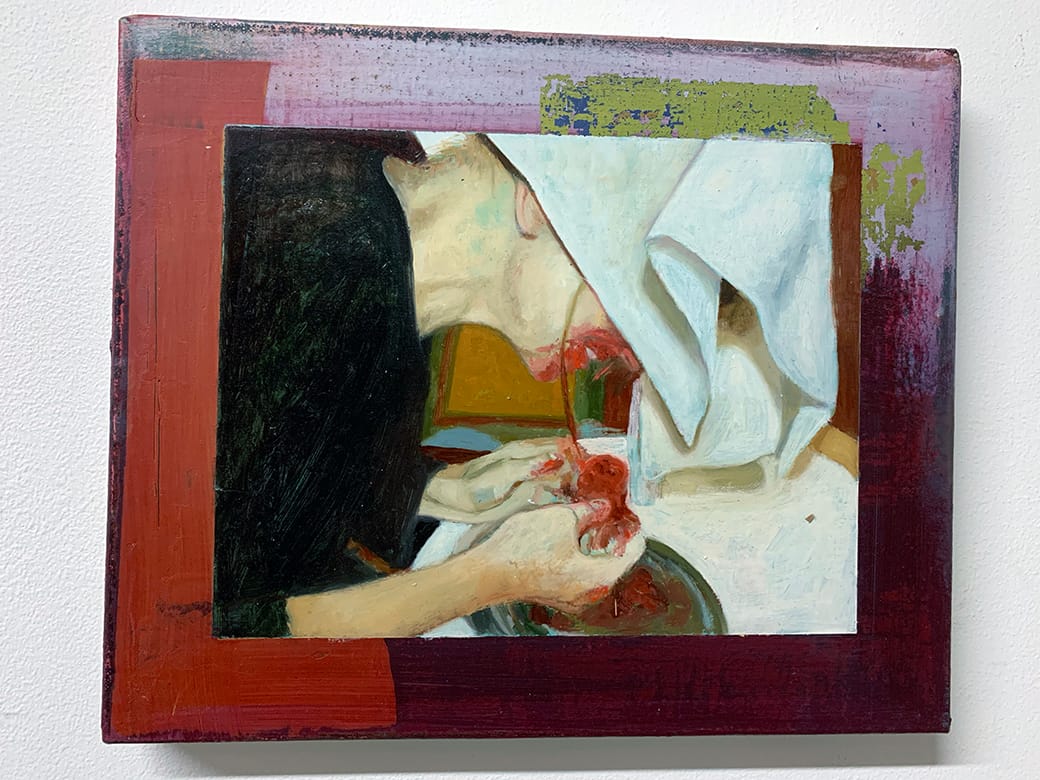 Intimate in size, his series “Under The Hood,” depicts the ritual of consuming Ortolan songbirds, a French delicacy, as an act of delicate gluttony with endless metaphorical associations. As the U.S continues to reckon with its own history (and resurgence) of hiding beneath white hoods, these works challenge the proliferation of excess, ritual, and murder.