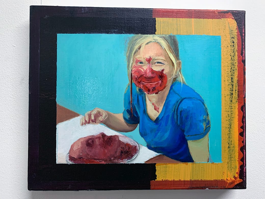 Moving further toward the beautifully grotesque, the forensic paintings of Joshua Nierodzinski at his J&M Studio space functioned in a similar manner, rendering something as benign as a pie-eating contest in visual language that evokes cannibalistic pleasure.