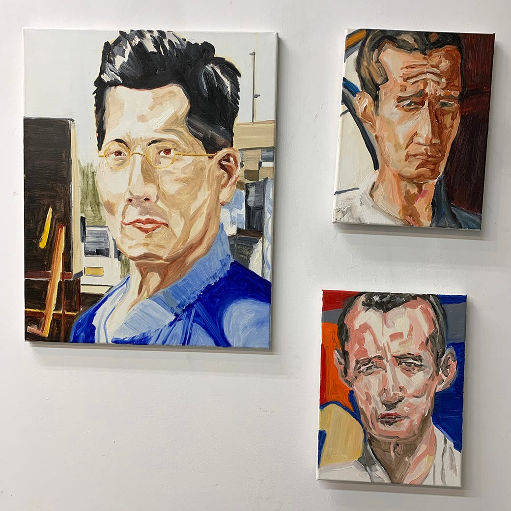 Shifting from the privilege of movement to issues of identity, I ended my tour inside the studio of Homer Shew. In small-scale gestural works, Shew paints portraits of fellow Asian Americans — everyone from friends and cultural figures to his landlord. While the conversations he describes having with his subjects — exploring ideas of Asian dislocation and the absence of representation in American culture — almost overshadow the portraits themselves, the accumulation of faces offer a fascinating illustration of the multiplicity contained within a single descriptor. In a country where nearly 50% of post-Millennials are nonwhite, Shew’s paintings allude to a future where inclusive representation is simply an accurate depiction of society