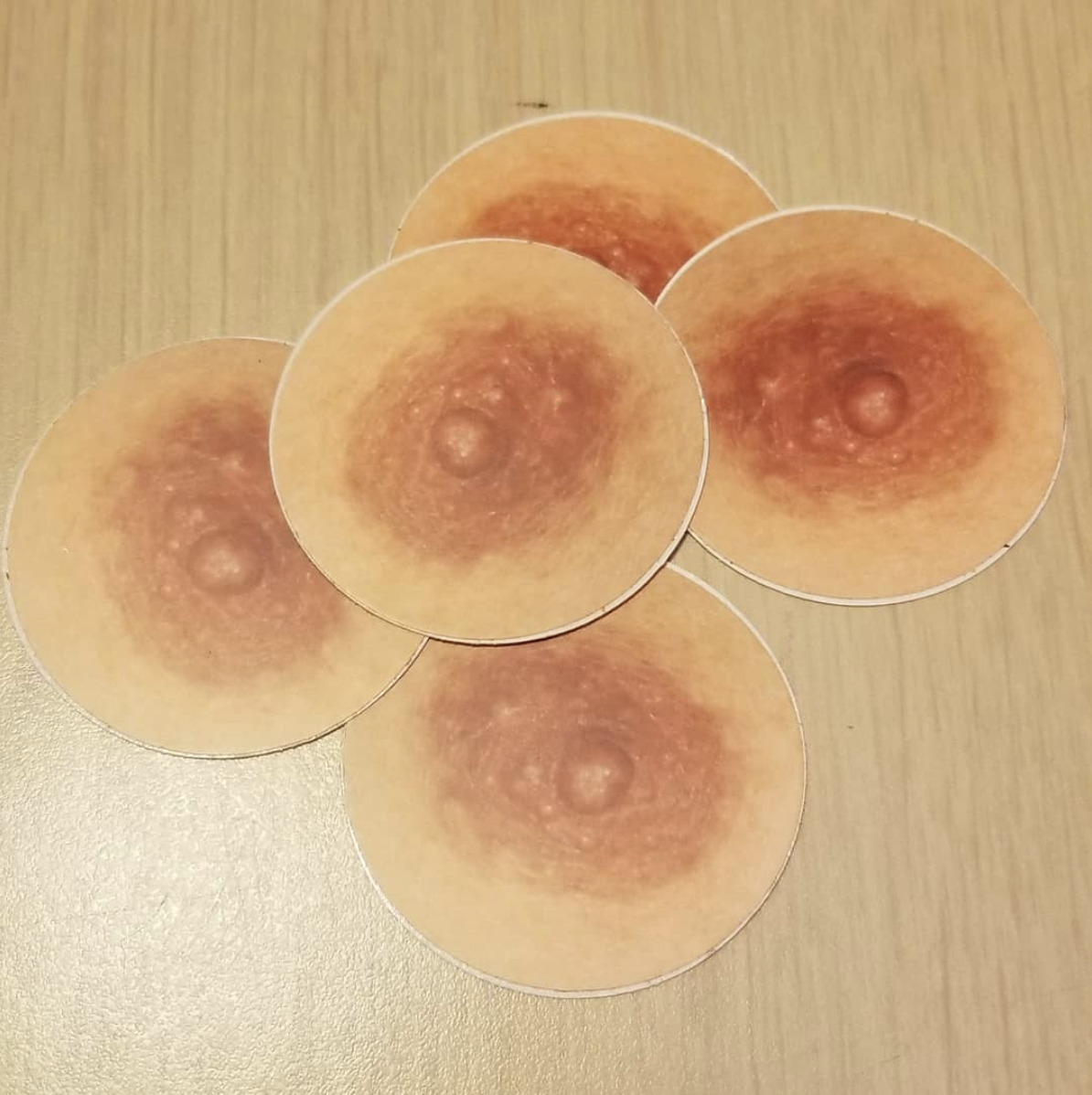 In 2014, Micol Hebron was one of 125 artists who contributed work to a show in Los Angeles benefiting cancer research and cancer survivor support. To promote the show, Hebron posted on social media that if she could get 100 people to RSVP to the Facebook event for the exhibition, she would appear topless at the opening. Her entreaty worked, many people attended, and she — along with several friends, both male and female — went topless. The event was a big success, fun was had, money was raised for cancer research and support, and many people posted images from the event on social media. But a few days later, the images of Hebron and her friends topless were removed from Instagram. She subsequently found out that according to the platform’s guidelines, men can appear topless, but women cannot. This irked her; it seemed completely random and unfair, especially in the context of the breast cancer benefit, so she started her male nipple sticker project, and shared it on social media.