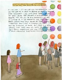 At first glance, her works on paper, so reminiscent of children’s book illustrations, could be described as precious, adorable, cutesy. On closer inspection, the landscapes are crammed to the gills with text bubbles, which alternate between political diatribes and confessional diary entries. As a matter of personal taste, I tend to shy away from artists that use their practice as a bully pulpit. And yet, with Wilson, I can’t stop looking at her work.