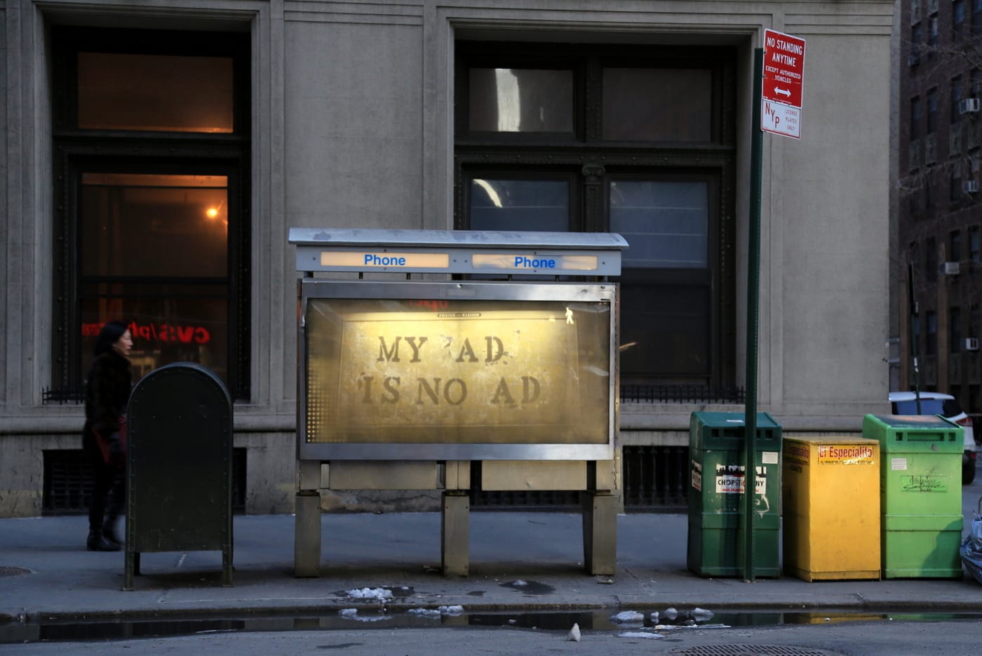Acutely aware of the deficiencies of this nimble cultural aikido, a new group of artists and activists have refocused their efforts not on the messages themselves, but on the spaces that they occupy. Artists like Vermibus, OX, and myself along with activist groups like Brandalism and R.A.P. see the monopolization of our public visual environment by commercial concerns as a way for corporate media to set the terms of our cultural and political discourse through extreme repetition. Advertising today has so deeply saturated our shared public spaces that avoiding it and retaining your attentional independence requires a hermetic lifestyle counter to what it means to live in, and be part of a city. These artists, myself included, are unconcerned with the messages of commercial media and instead question the authority invoked through the sanctioned medium of outdoor advertising. If in early days it was thought that with the right stroke of a pen we would all just “snap out of it,” today’s public space activists question the very right of advertising to exist on our cities’ streets and walls. They see hope in protecting ourselves from the malevolent forces pushing us away from collectivity and towards our own individuality, by simply removing its influence.