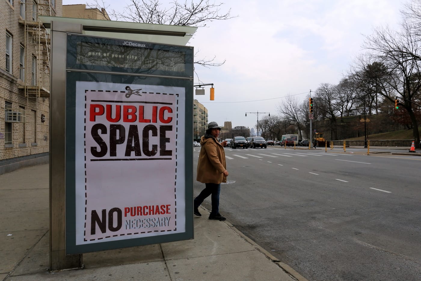 From March 22–March 25 the informal group held workshops, film screenings, and lectures in 38 cities and 21 countries, all of which addressed how we choose to curate our shared public spaces and what that means for the determination of our collective social agenda. Alongside these legal acts of resistance, a highly coordinated global advertising takeover was organized and implemented on March 23. Artists and activists in 16 countries and 21 cities replaced approximately 500 advertisements with artwork in an effort to demand democratic used of our shared public spaces. From Iran to Mexico, Canada to Norway, Australia to Israel and Argentina to the US, hundreds of participants made their opinions clear. The streets are ours, and we will reflect back the messages and ideas that we see fit. Photographer Luna Park has been at the forefront of documenting this growing movement and captured the following images from the New York City interventions that took place in the Bronx.
