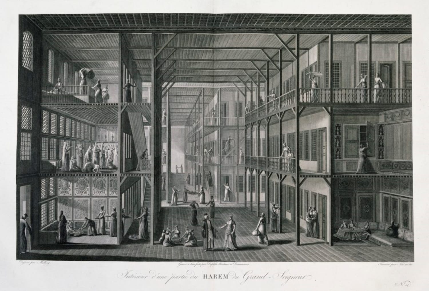 Contemporary artistic responses are equally telling, though they form a frustratingly small slice of the exhibition. The Turkish artist Inci Eviner challenged Ignace-Melling’s lascivious gaze in her monumental 2009 work “Harem,” which cleverly uses the original background of the engraving but with the addition of animated figures of women in the foreground. Clad in prisoner uniforms, they behave disturbingly erratically. One wields a pick-axe, the sound of its repetitive strikes underscoring the strange activities of the other women; some carry inert bodies; one conducts an imaginary orchestra; and others kiss. Instead of pleasurable and decadent, the harem becomes an asylum for the women inside it, who are driven mad by the restrictions placed on them by the original artist. It is a triumphant note to end on.