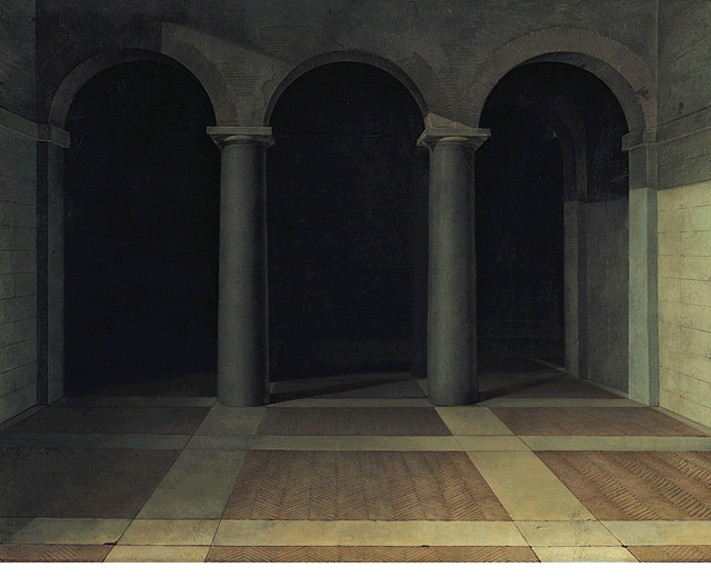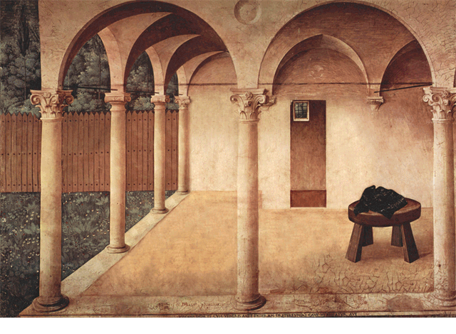 In the case of Fra Angelico’s Annunciation, Hajdu has taken the liberty to leave a scarf behind for where the Virgin Mary was sitting. In this one scene, we’re left to feel that the angel has just left and the Madonna gone inside. And even if the floor shadows are a little bizarre in Hajdu’s rendering, it only helps us to see that the geometric arrangement of the scene in general is quite peculiar in and of itself.