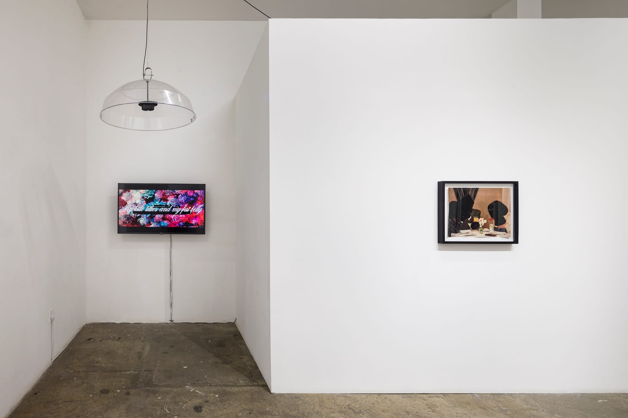 In her book Playing in the Dark, Toni Morrison describes how representations of whiteness and Blackness function in the American literary canon. “Images of blackness can be evil and protective, rebellious and forgiving, fearful and desirable- all of the self-contradictory features of the self,” Morrison writes. “Whiteness, alone, is mute, meaningless, unfathomable, pointless, frozen, veiled, curtained, dreaded, senseless, implacable.” This blank impenetrability is the manifestation of white hegemony, Morrison posits, while Blackness functions as its “reined-in, bound, suppressed and repressed” shadow. In her solo show Vignette, now on view at Sargent’s Daughters, Abbey Williams inverts this paradigm, reconfiguring whiteness not as a central monolith but as a narrowly-defined terrain over which Blackness can spill — unbounded, expansive, liquid. Across a series of works that incorporate video, multimedia collage, and works on paper, Williams explores how Black affective space persists within and outside the constricted frame of the white gaze.
