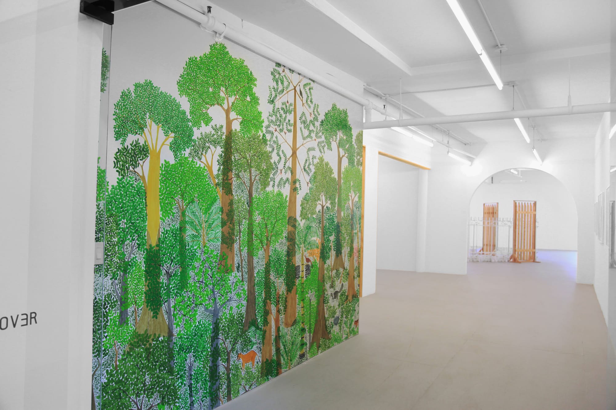 Rodríguez essentially transcribed his memory onto paper, using succulent green inks to meticulously paint thousands of leaves cascading off the branches of trees and sprouting from vines.