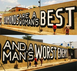 Street artist Above intended to make a strong anti-blood diamond statement with a mural on the facade of Johannesburg's largest diamond exporter but it just sounds sexist.