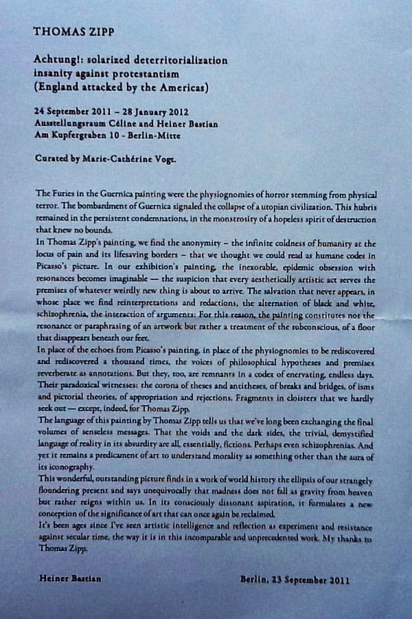 This morning, I received the following image of a press release from a Berlin gallery show and I was speechless.