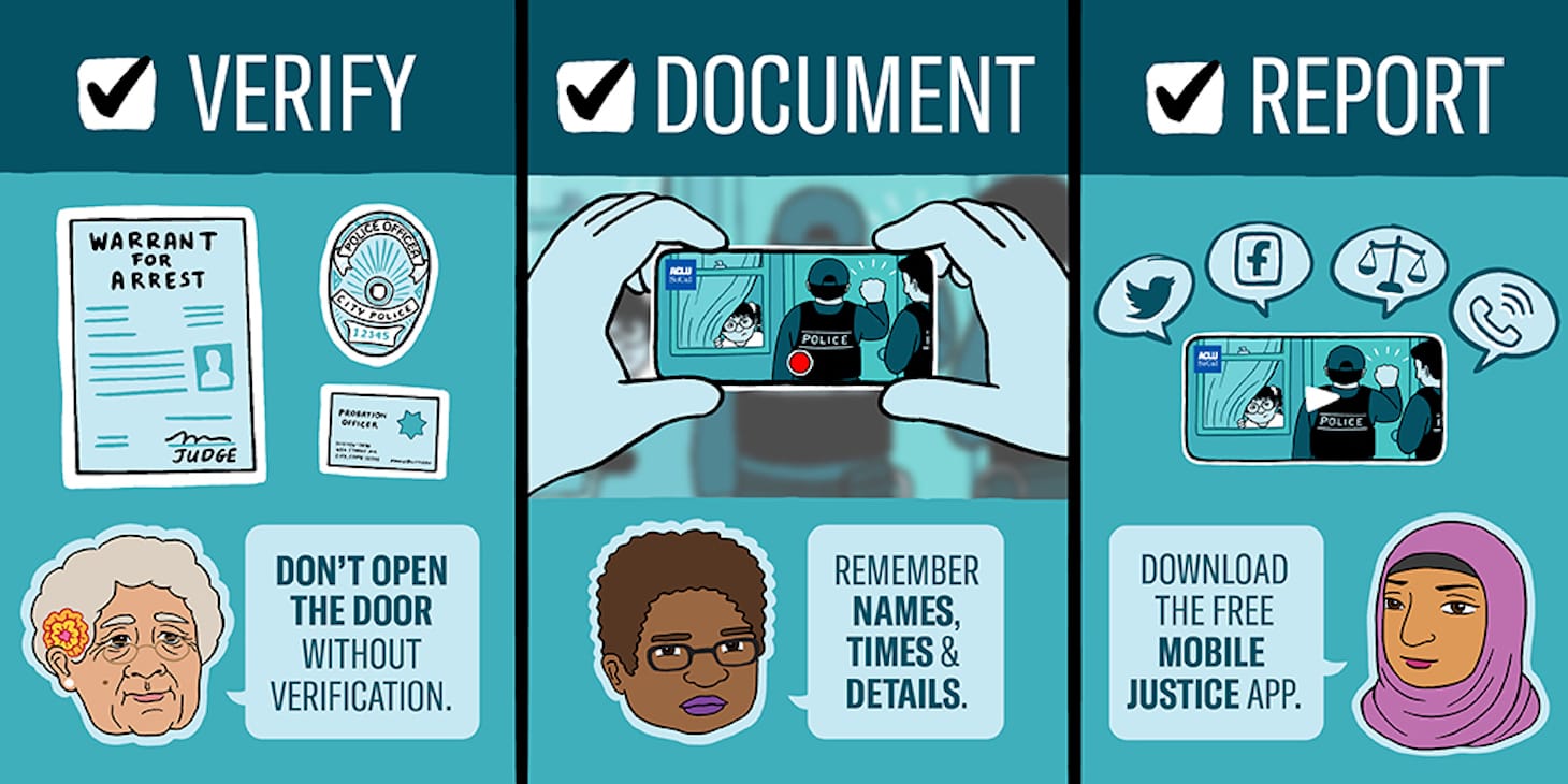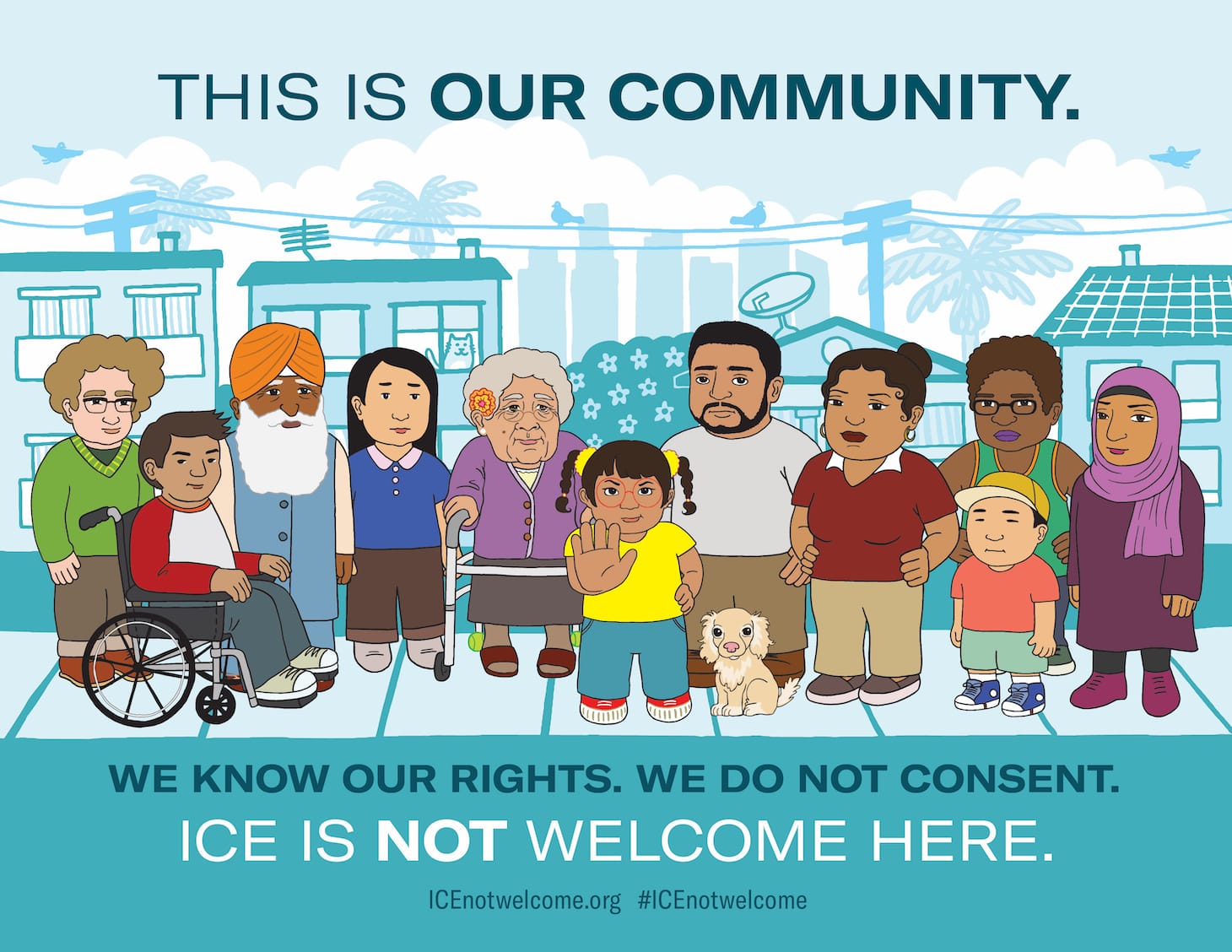 As part of the residency, Chan completed a series of images outlining people’s rights in the face of “deceptive tactics used by federal immigration authorities.” The ICE Not Welcome campaign kicked off in April — when lockdown was already in effect — with outlined action items and printable door hangers, posters, and coloring sheets. The campaign is a part of the ACLU’s larger Know Your Rights efforts, which cover topics like disability rights and prisoners’ rights.