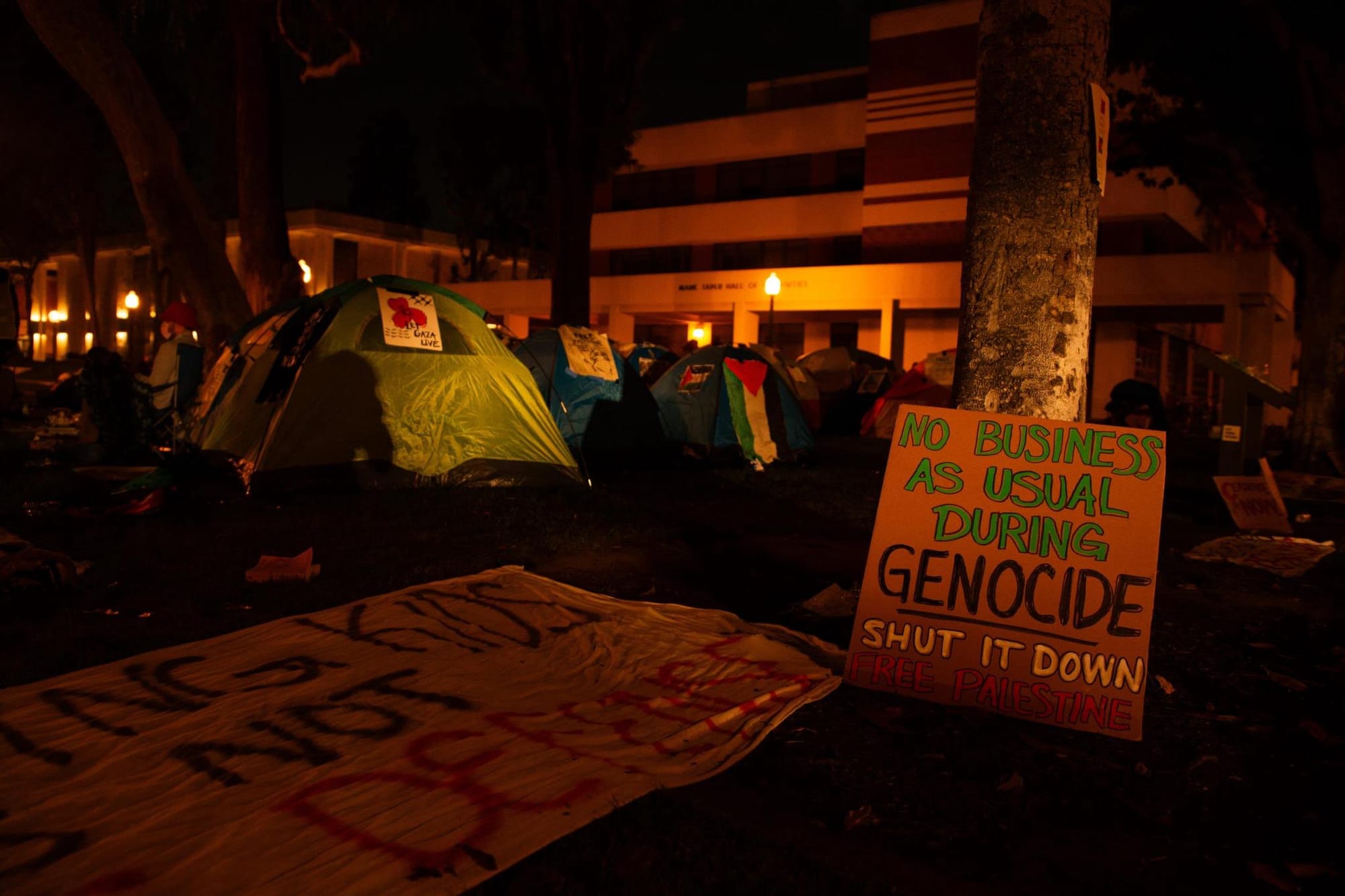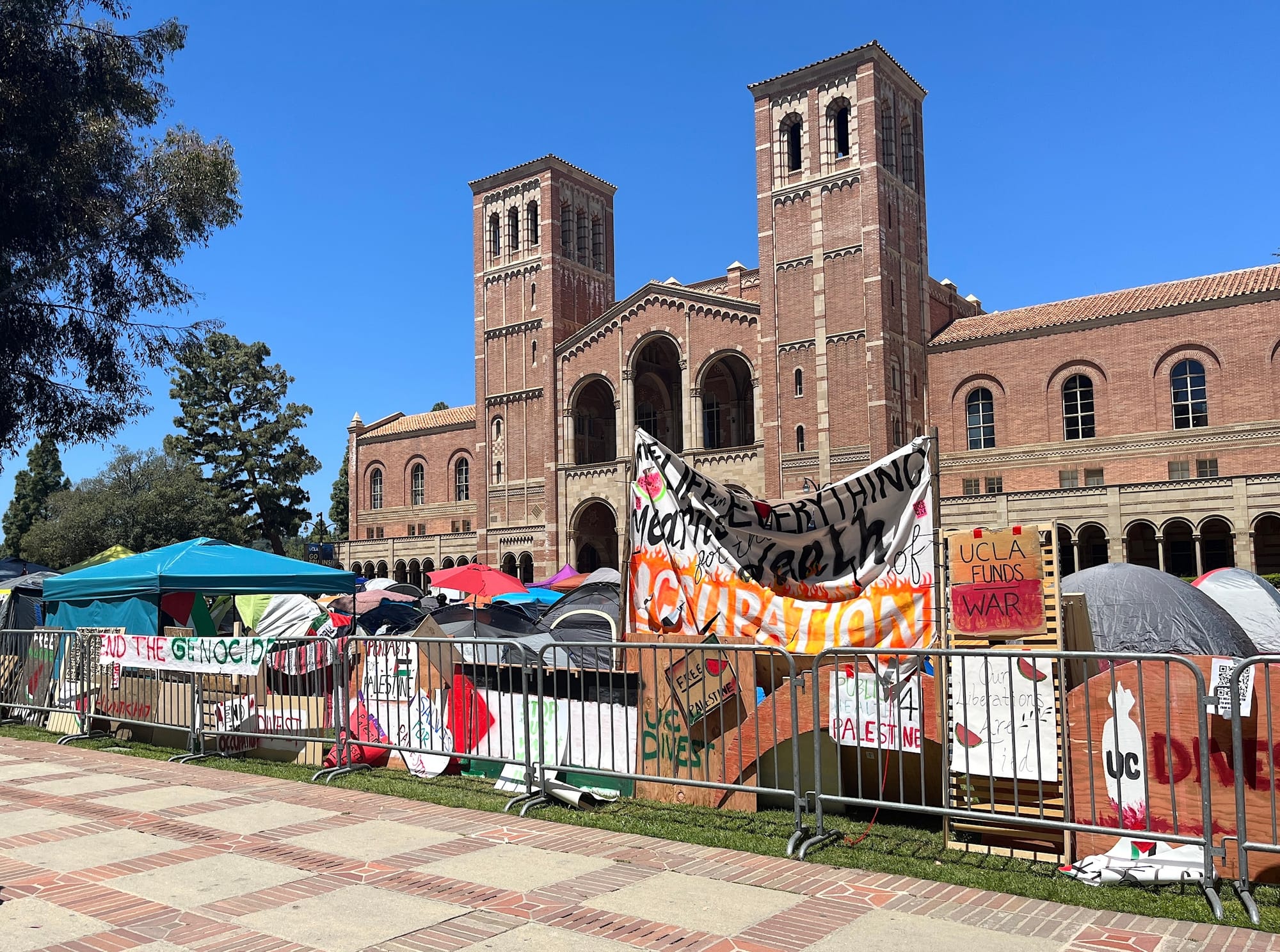 That night, LAPD officers in riot gear entered the campus and, after a tense stand-off, arrested 93 protesters, many of them students. The tents were cleared from Alumni Park but reassembled at the nearby Founders Park.