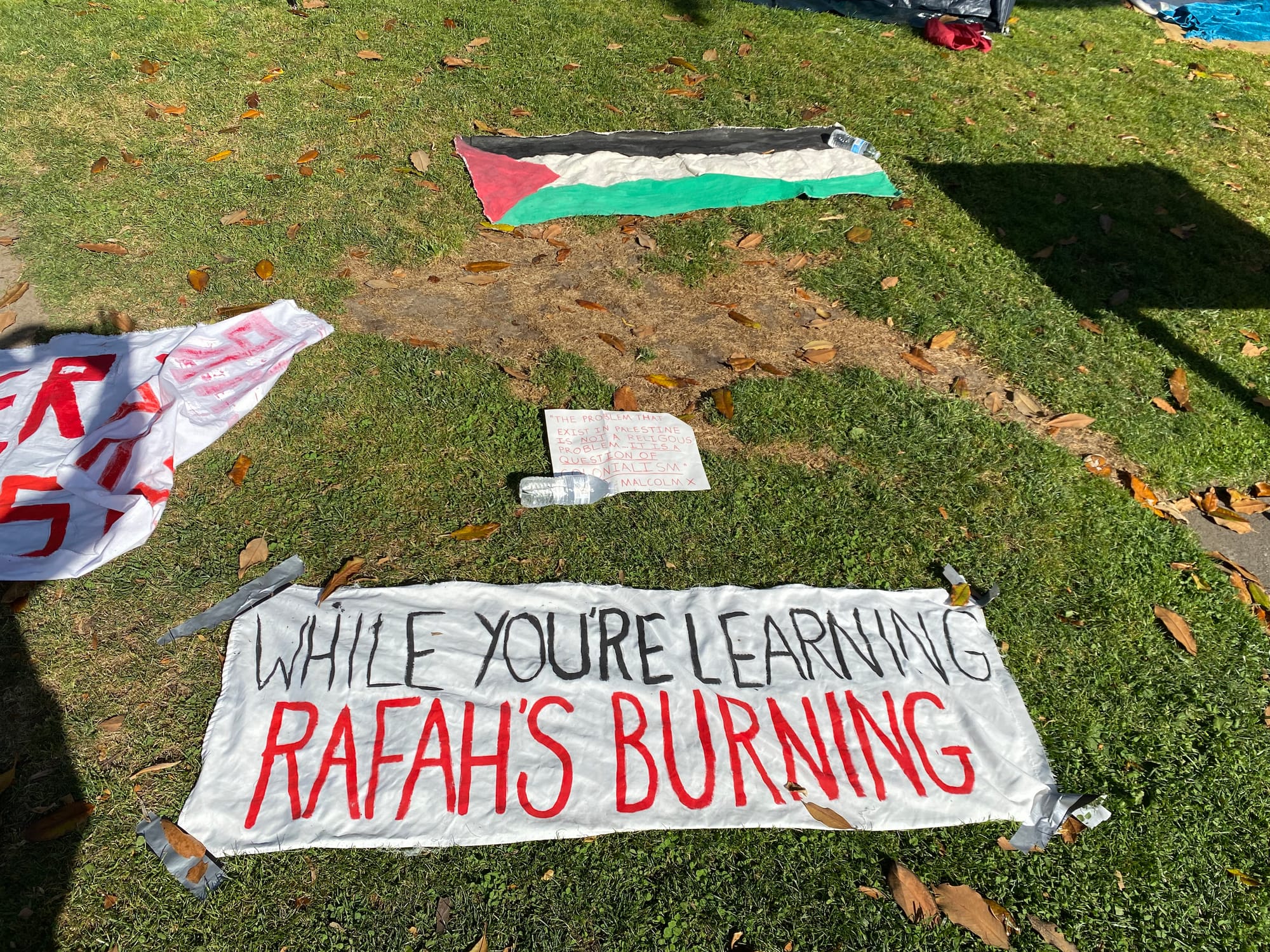 With just days left in the school year, the campuses will soon be shifting to the off-season, as most of the students and faculty pack up for the summer. The students in the Divest From Death Coalition, however, have no intentions of leaving. “We are not the ones stopping this encampment from ending,” they told Hyperallergic. “We plan to remain here until divestment.”