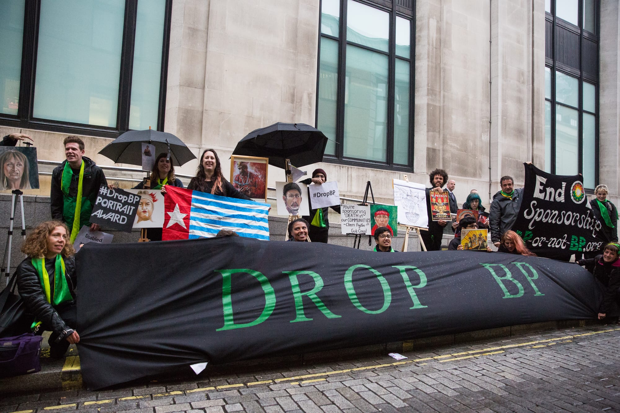 LONDON — On Monday, June 10, a group of activists staged a protest outside the National Portrait Gallery (NPG), disrupting the BP Portrait Awards awards ceremony and continuing calls for the gallery to end its sponsorship deal with the oil company, British Petroleum (BP).