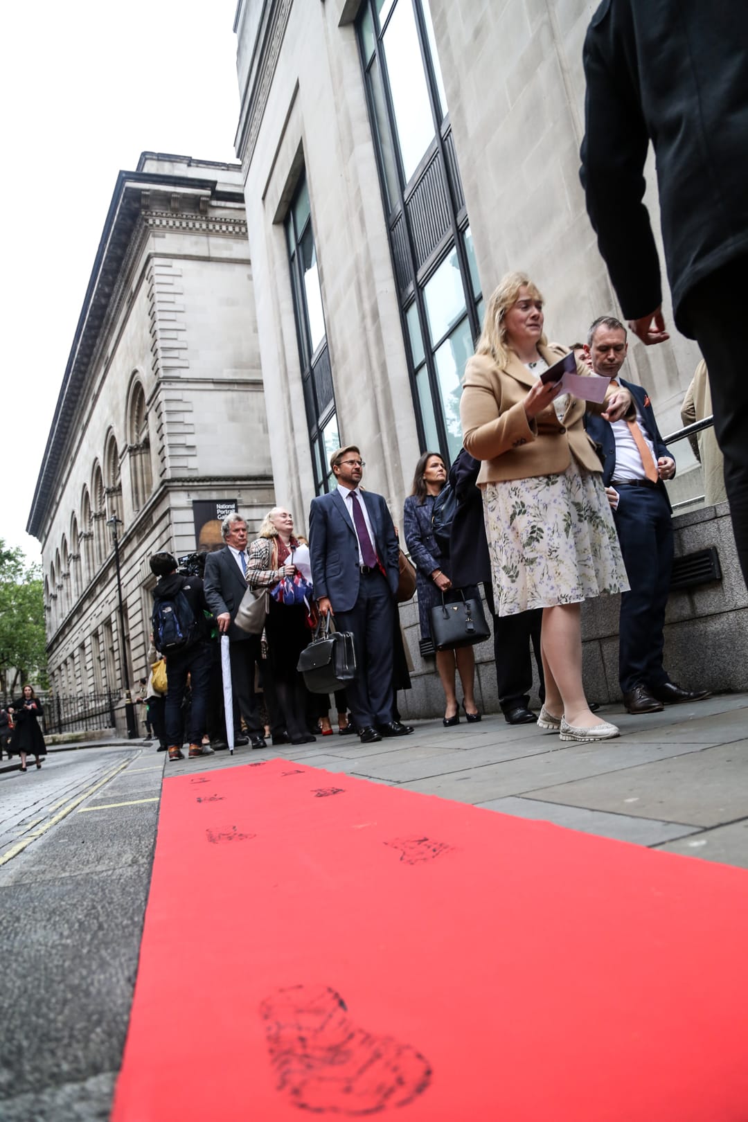 Dozens of protesters blocked entry to the gallery for guests of the ceremony, linking arms and chaining themselves to the gallery gates. Guests were forced to climb over the wall with the assistance of security in order to enter the gallery.