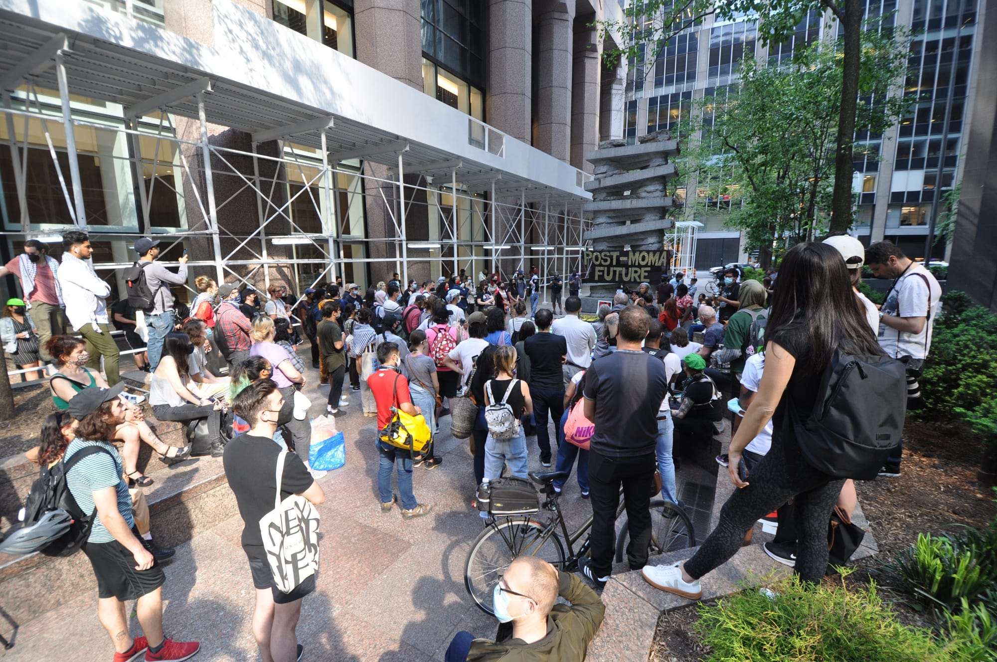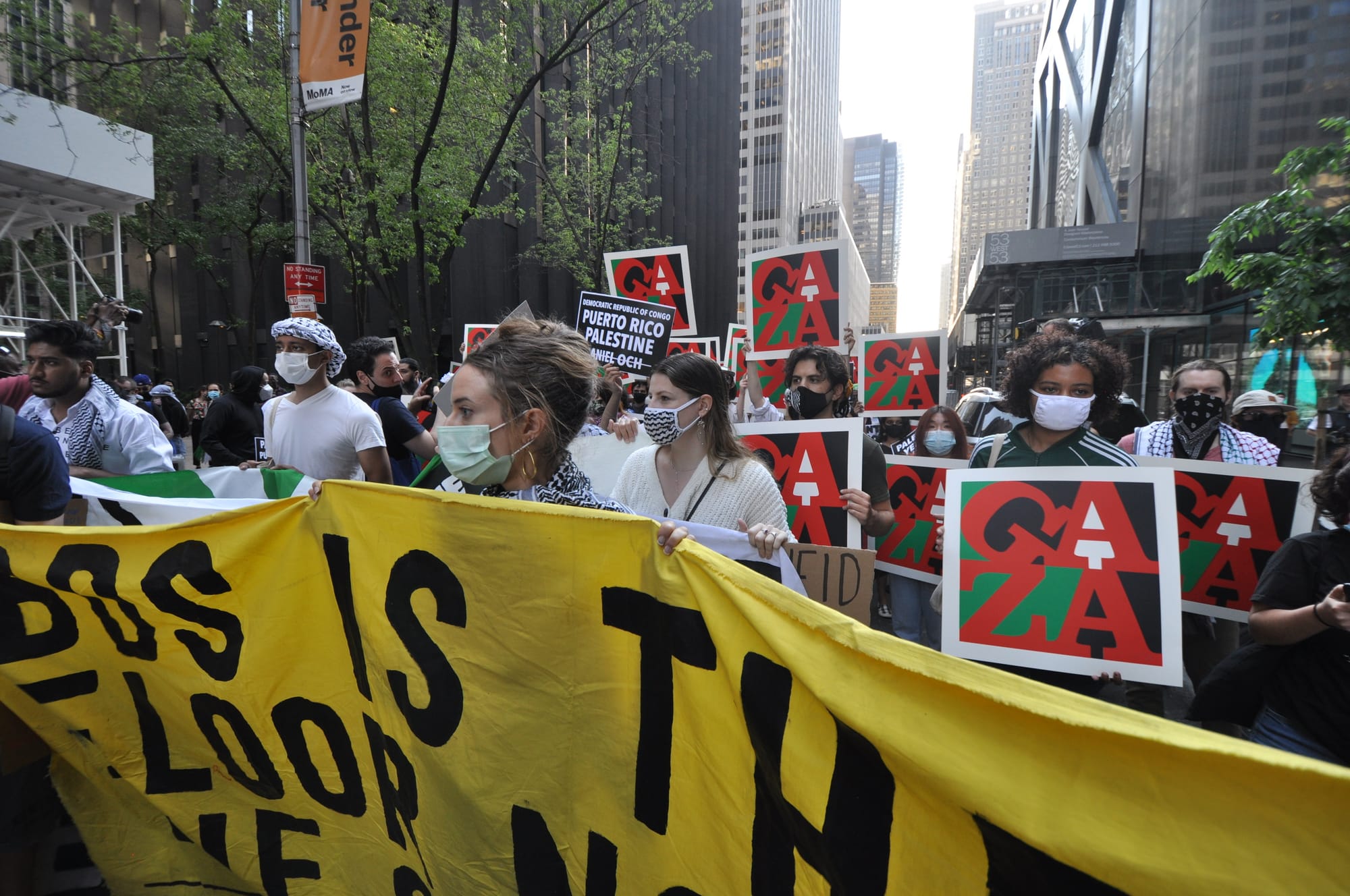 "Despite the propaganda that Glenn Lowry spews to his staff, the post-MoMA future meant that we get to decide what a public space looks like," said artist-activist Shellyne Rodriguez at the museum's entrance. Rodriguez was referring to the MoMA's director, who previously accused the protesters, without providing evidence, of committing violence against the museum's security staff during a protest on April 30.
