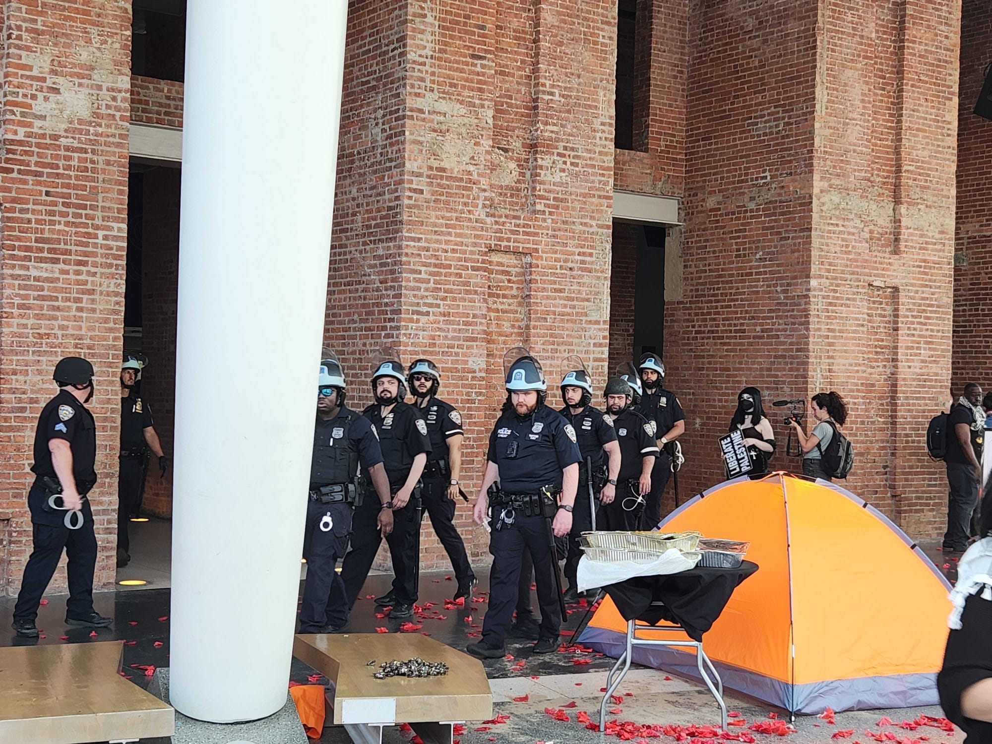 "Cops swarming the inside, outside, on the roof, and at the back of the museum while assaulting our comrades, tearing off one woman’s hijab, and punching people," she said. "They were specifically targeting Brown and Muslim protesters, even those who were dispersing and leaving the museum as instructed. We were collectively brutalized by the same institution that prides itself on being a 'People’s Museum' and claims to uplift our work."