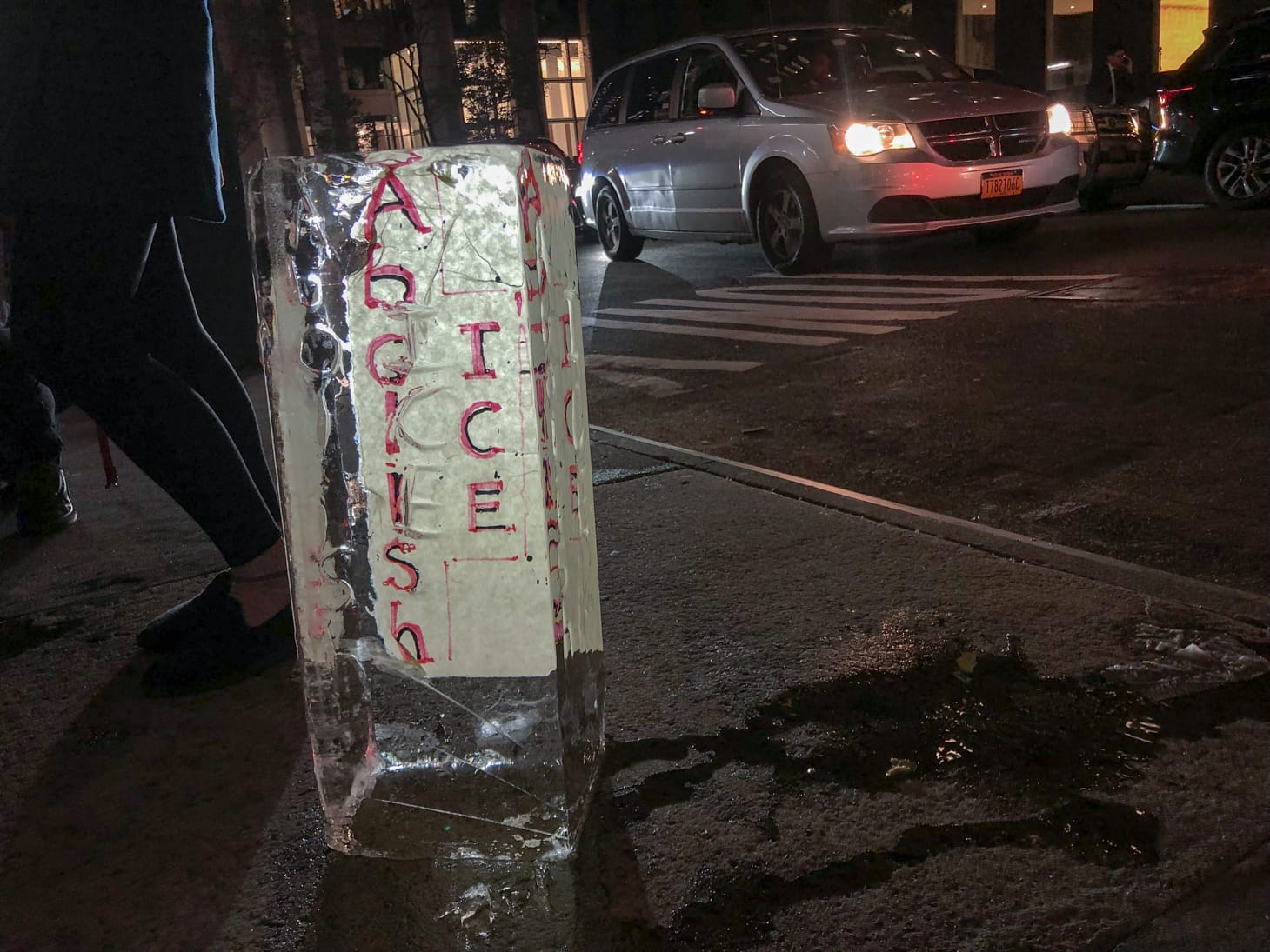 Speaking to Hyperallergic, some activists expressed their disappointment from the tepid reaction they received inside the party. “Their faces were blankly staring back at us,” said an activist from the group Sin Fronteras (No Borders) NYC. “It’s disappointing that the art community doesn’t support people who are suffering.”