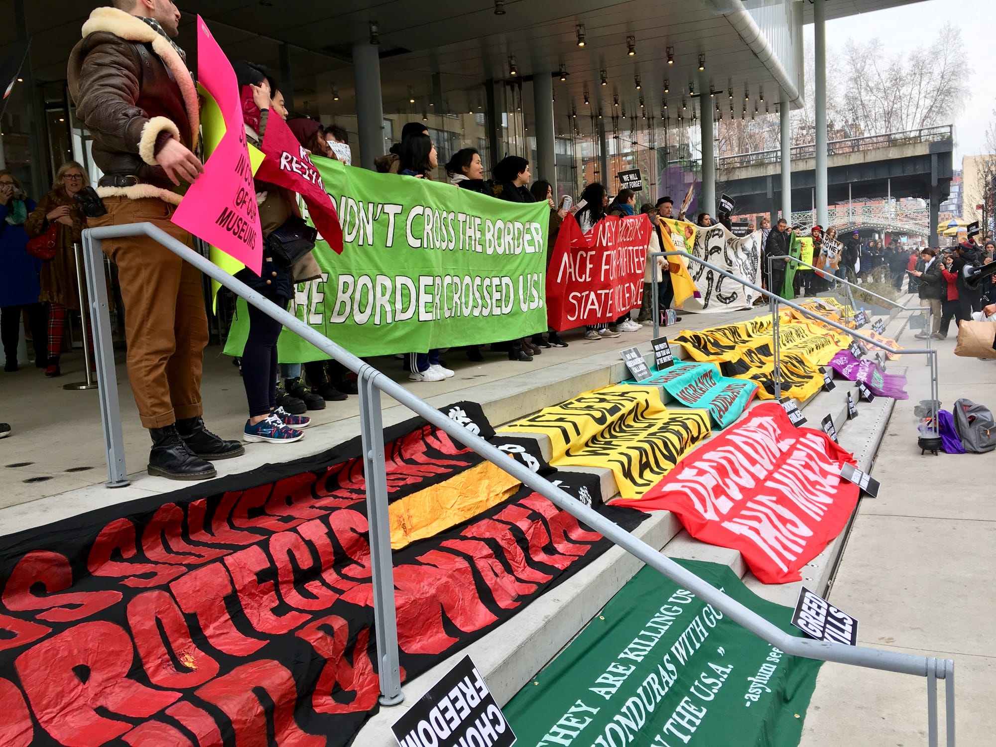 To help spread the message of that pain, organizers fanned out across the plaza in front of the museum and at the entrance to the Highline, handing out flyers that read, in part: